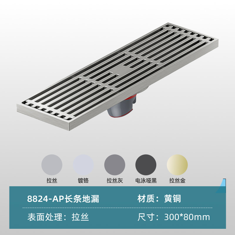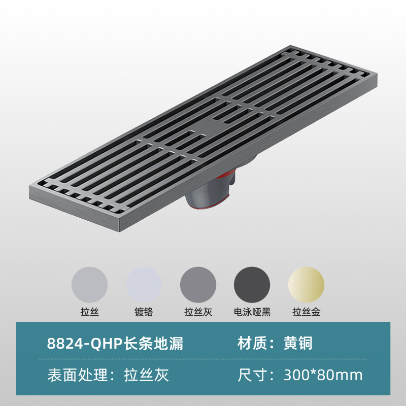 黄铜枪灰·10级电镀-大排量长条淋浴地漏+防虫臭芯【300*80mm】