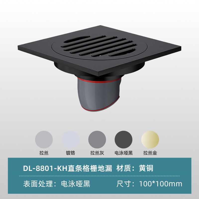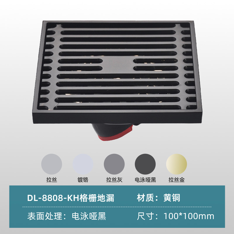 黄铜电泳哑黑-大排量淋浴地漏+防虫臭芯【10*10cm】