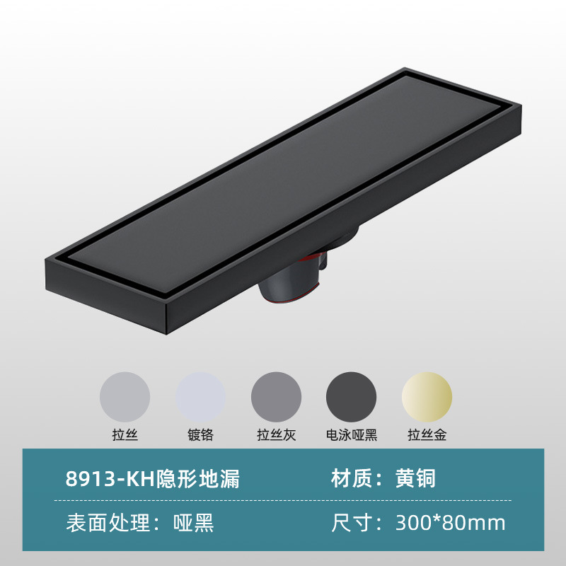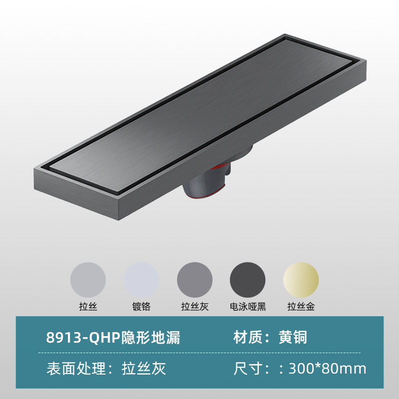 黄铜电泳哑黑·10级电镀-隐形地漏+磁吸防臭阀芯【300*80mm】