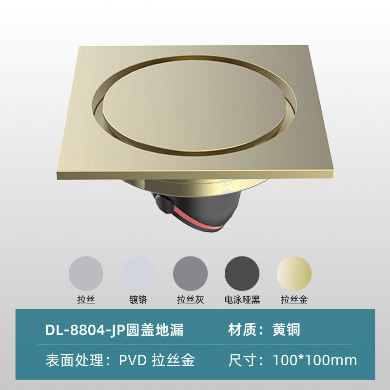 黄铜拉丝金·10级电镀-小隐圆盖干湿区通用地漏+防虫臭芯【10*10cm】