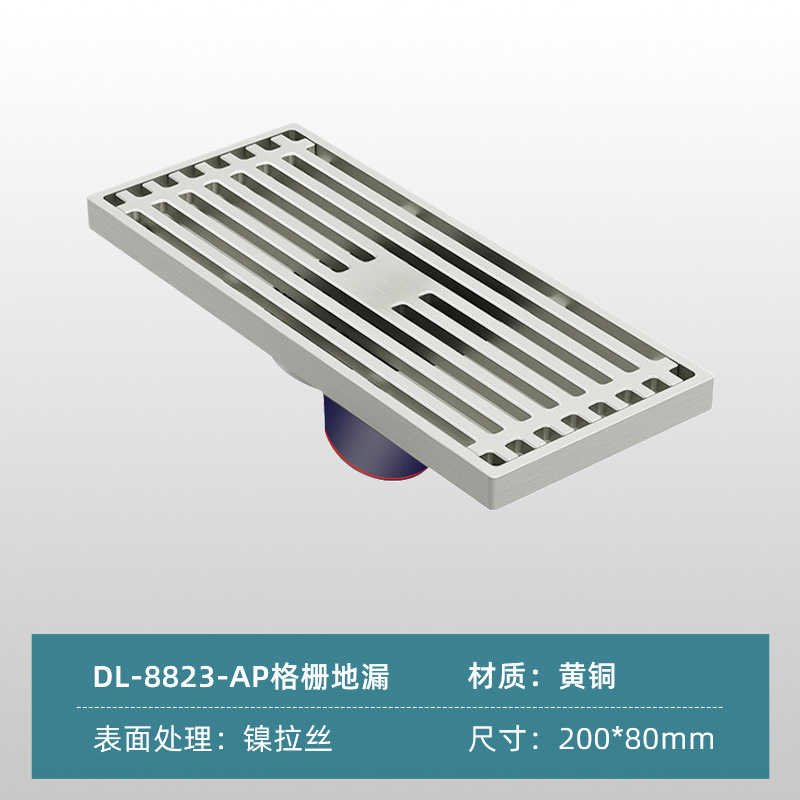 黄铜镍拉丝-大排量长条淋浴地漏+防虫臭芯【200*80mm】