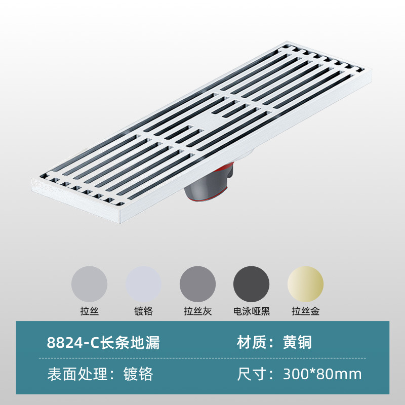 黄铜镀铬·10级电镀-大排量长条淋浴地漏+防虫臭芯【300*80mm】