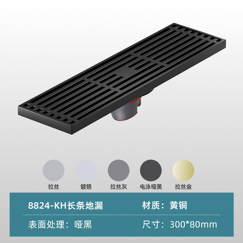 黄铜电泳哑黑-大排量长条淋浴地漏+防虫臭芯【300*80mm】