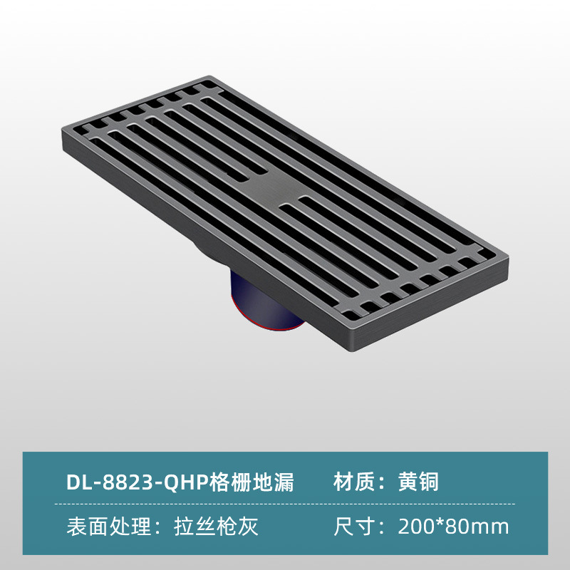 黄铜枪灰·10级电镀-大排量长条淋浴地漏+防虫臭芯【200*80mm】