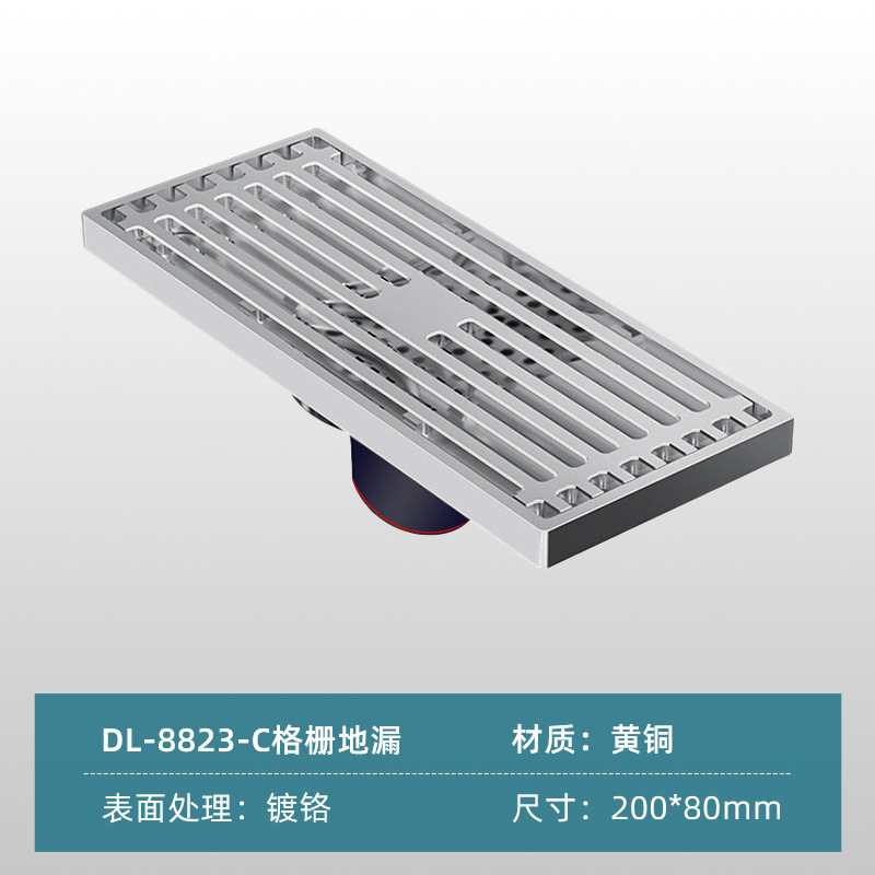 黄铜镀铬·10级电镀-大排量长条淋浴地漏+防虫臭芯【200*80mm】