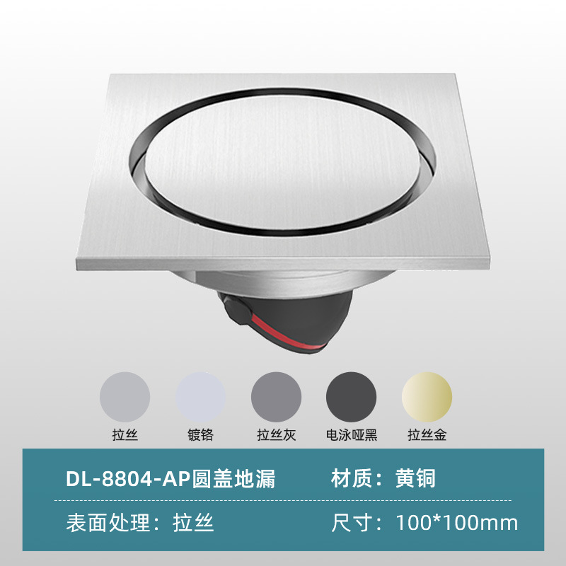 黄铜镍拉丝-小隐圆盖干湿区通用地漏+防虫臭芯【10*10cm】