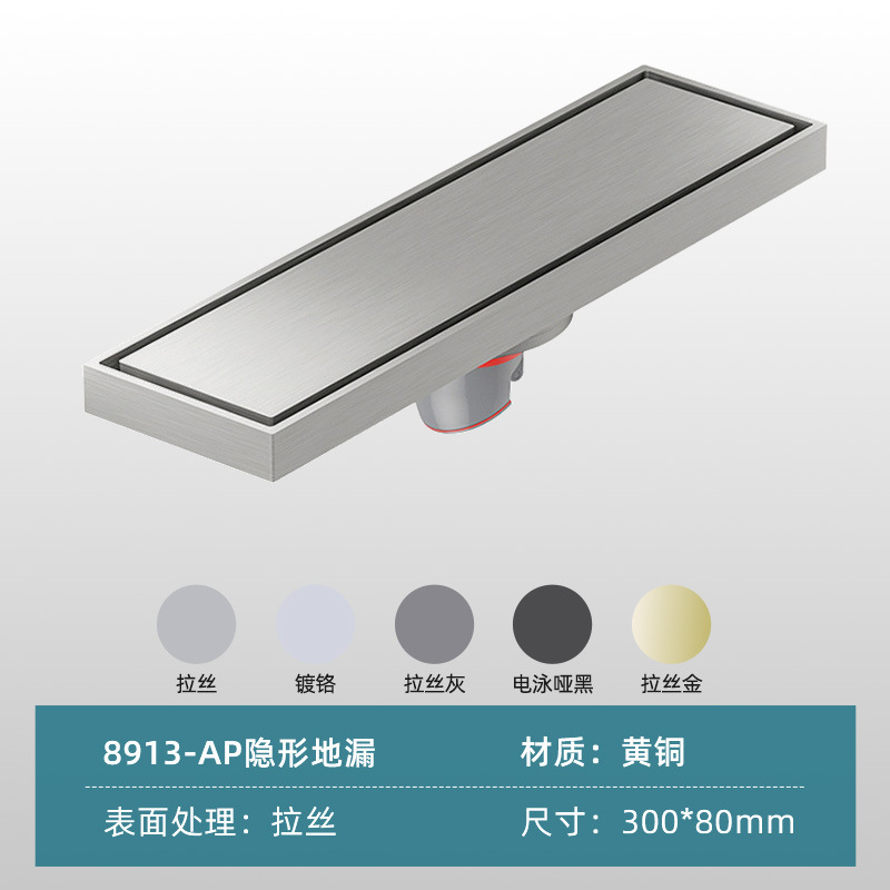 黄铜拉丝·10级电镀-隐形地漏+磁吸防臭阀芯【300*80mm】