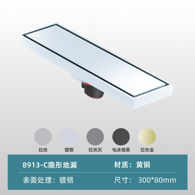 黄铜镀铬·10级电镀-隐形地漏+磁吸防臭阀芯【300*80mm】
