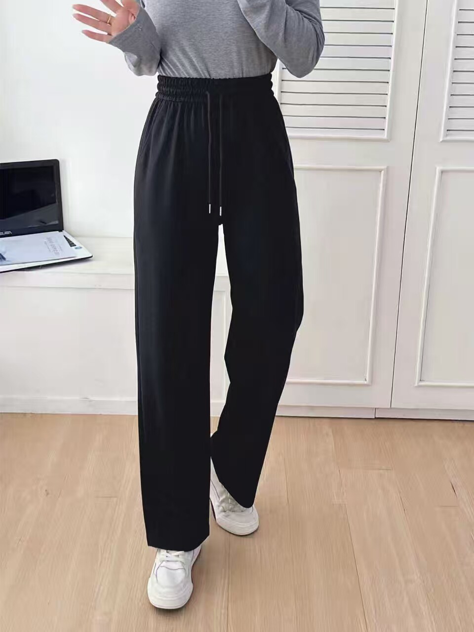 窄版香蕉阔腿裤女夏季2026新款小个子高腰垂感卫裤休闲直筒弯刀裤