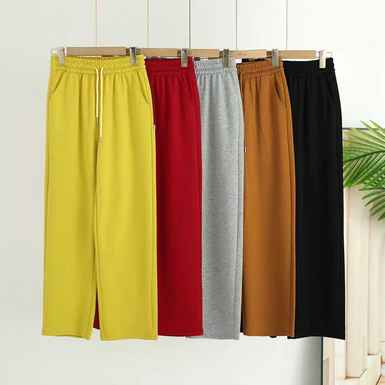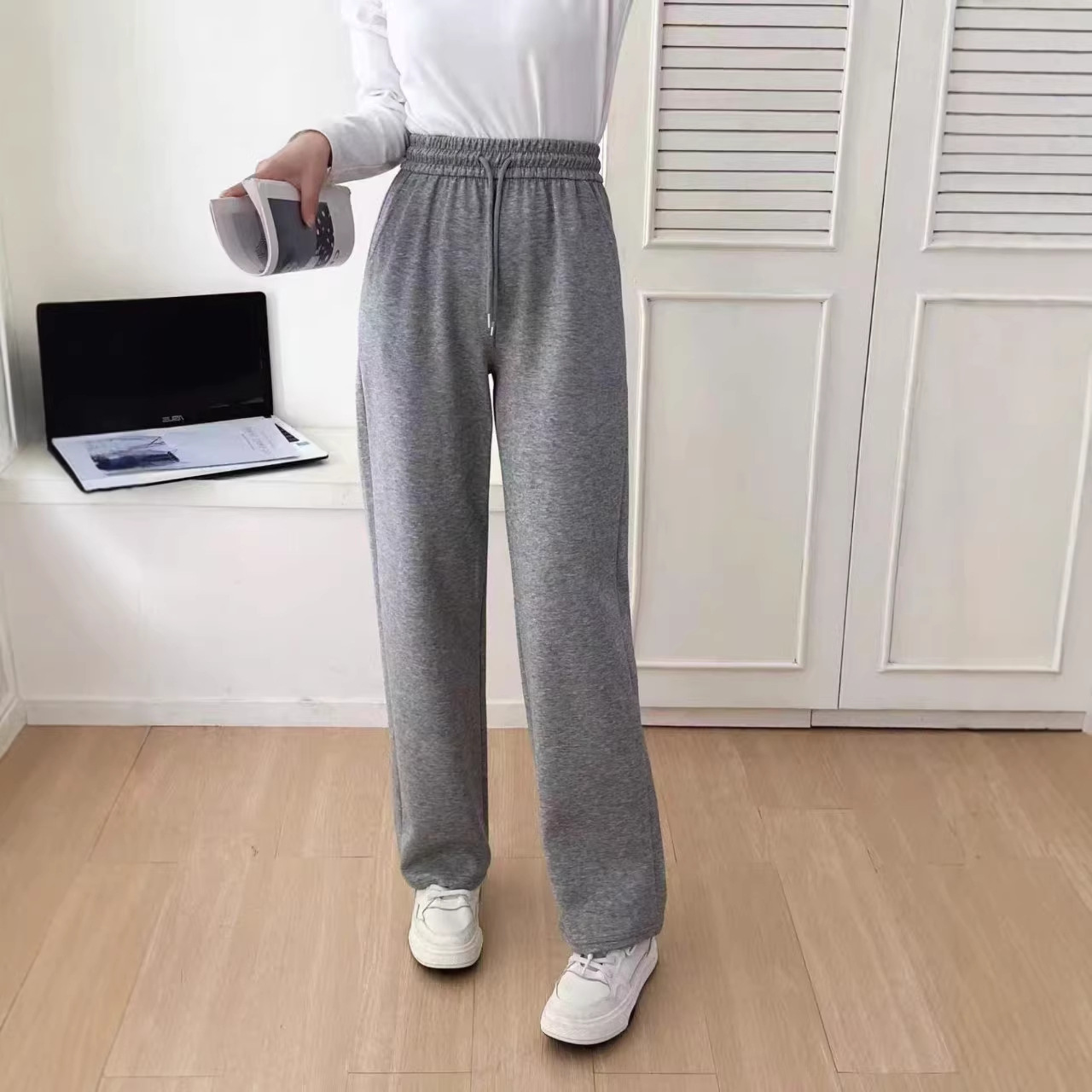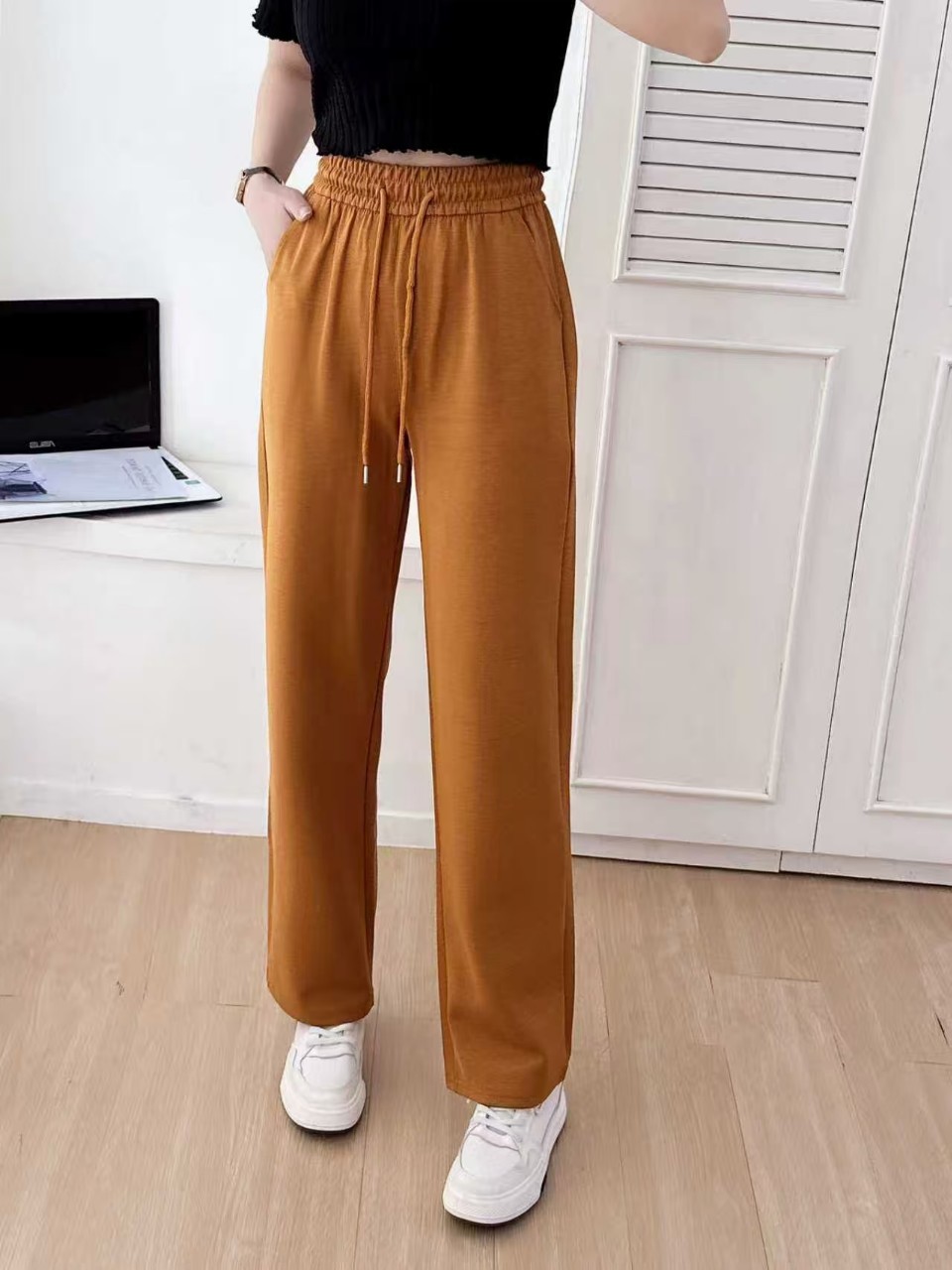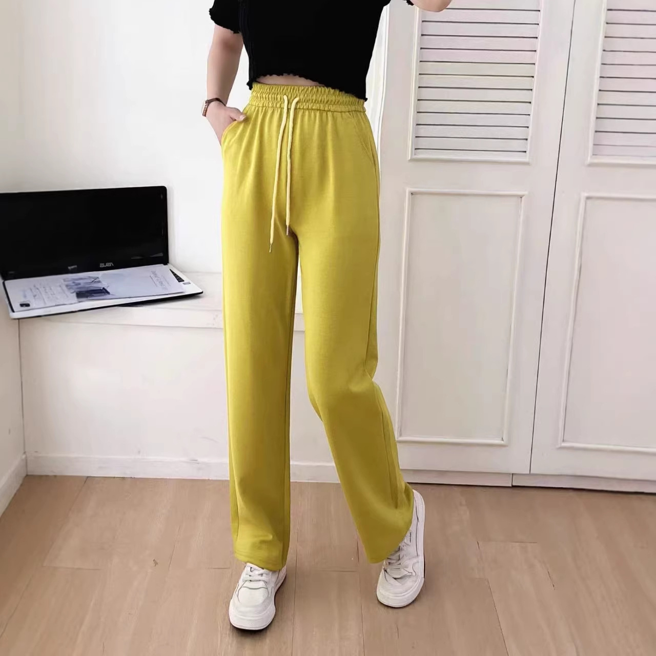 夏季新款2026松紧腰抽绳直筒裤女宽松显瘦休闲百搭阔腿长裤子潮流