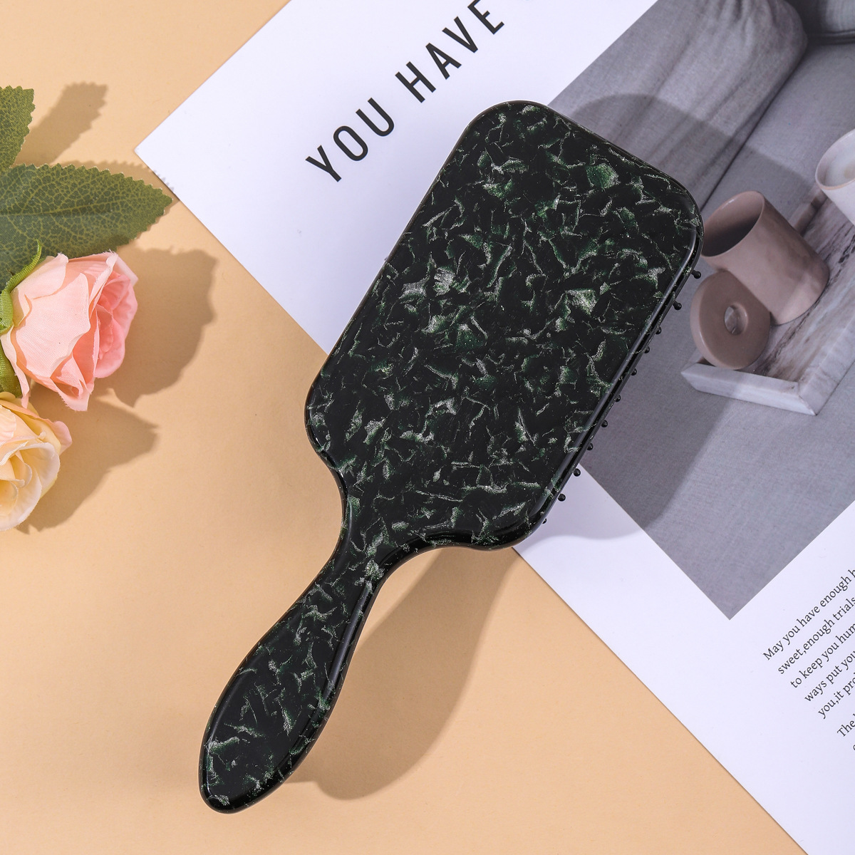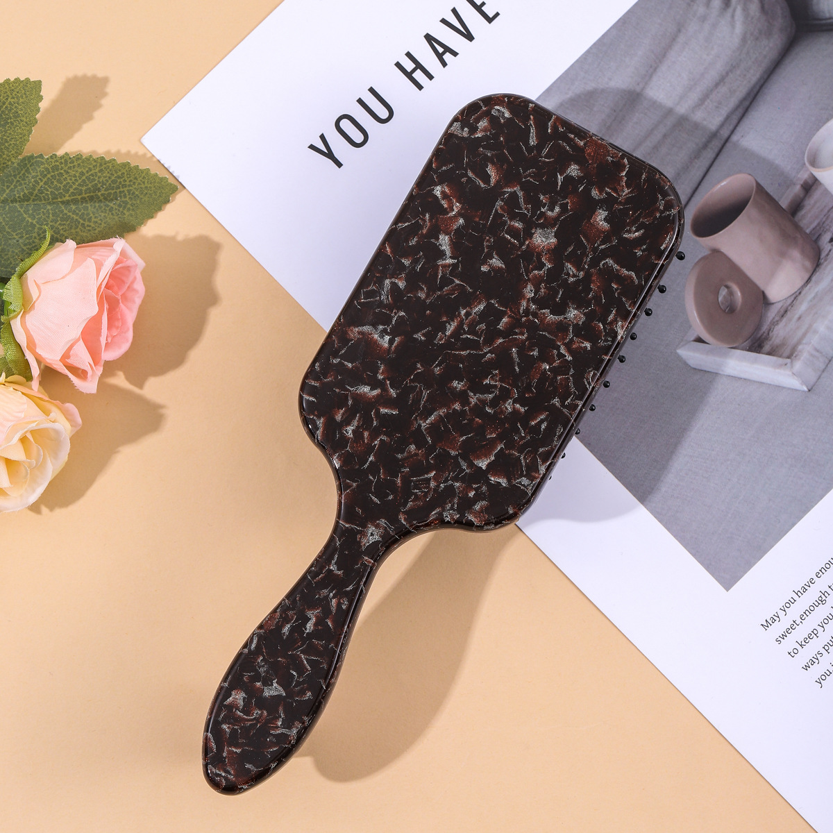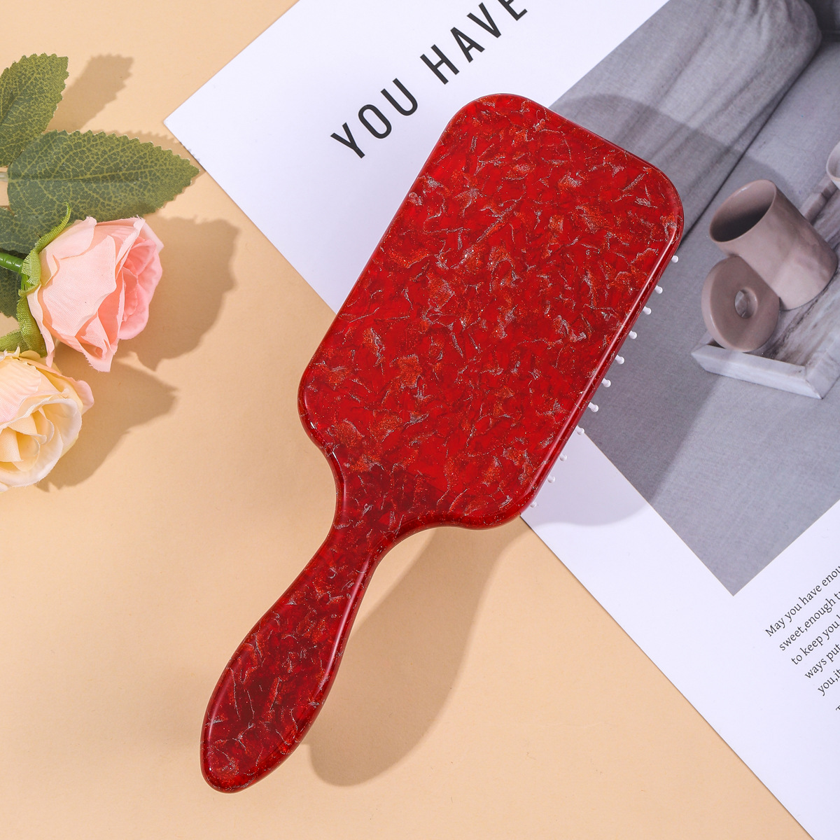 欧美复古气囊梳细闪裂变高颜值醋酸大号气垫梳子方形长柄发梳批发