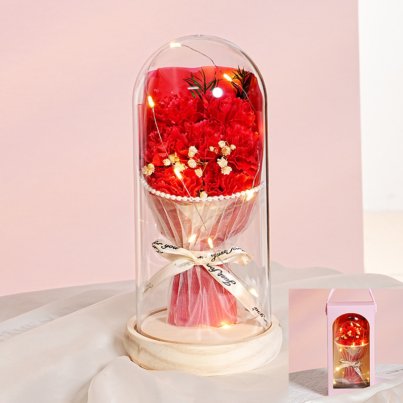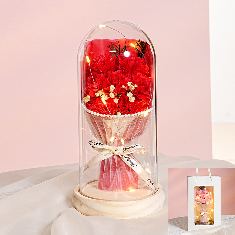 7朵原木底【康乃馨红】灯+礼品袋