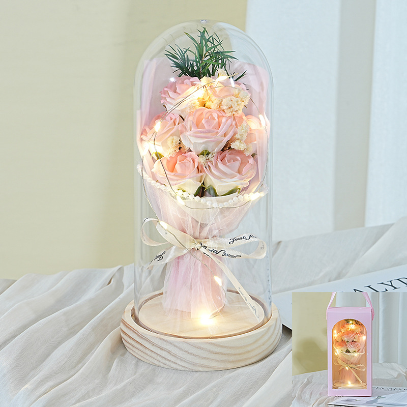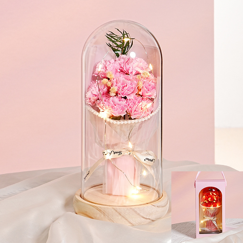 7朵原木底【康乃馨粉】灯+礼品袋