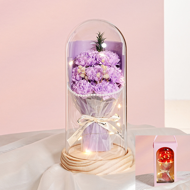 7朵原木底【康乃馨紫】灯+礼品袋