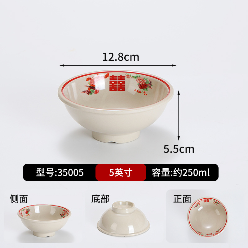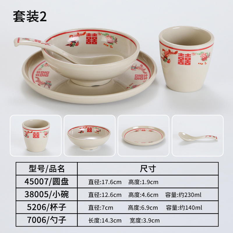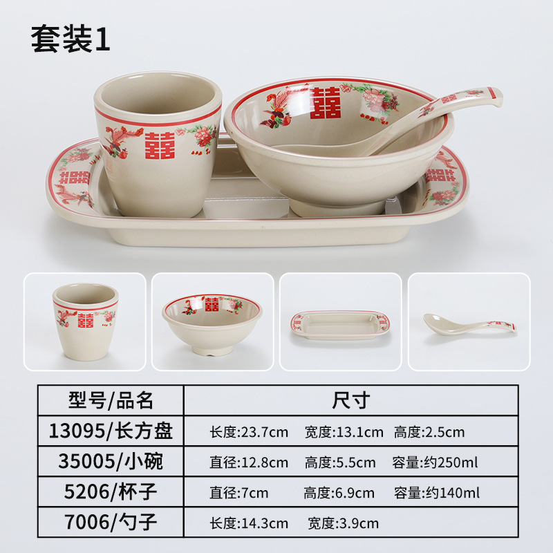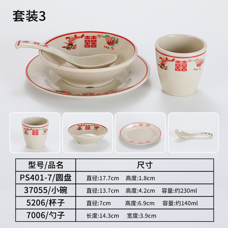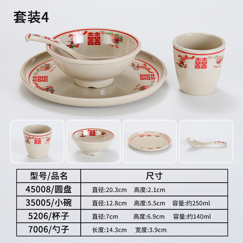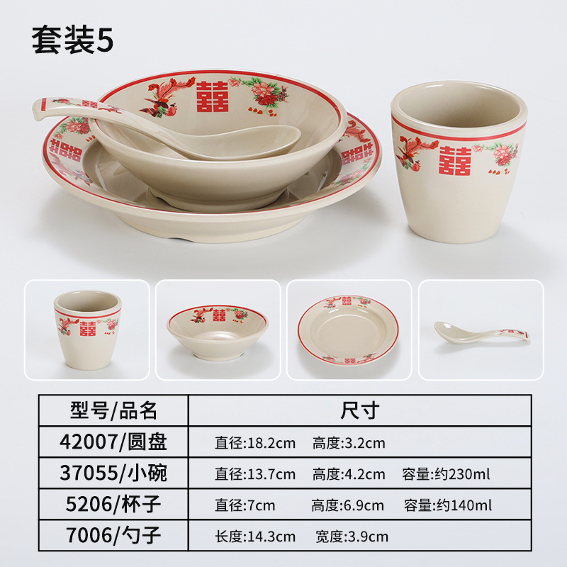 复古市井火锅摆台四件套商用密胺双喜菜碗喜字碗盘重庆老火锅餐具