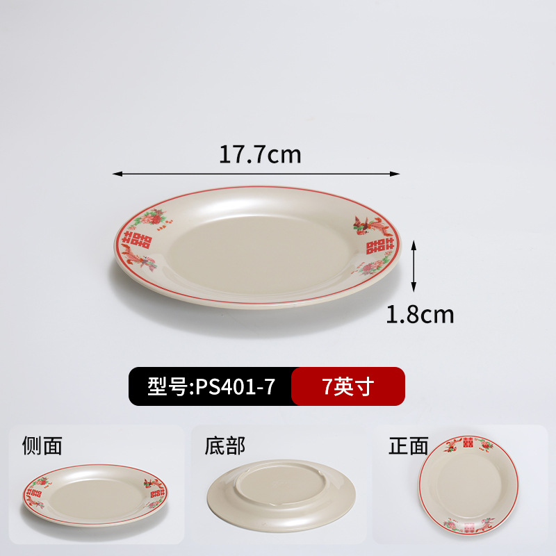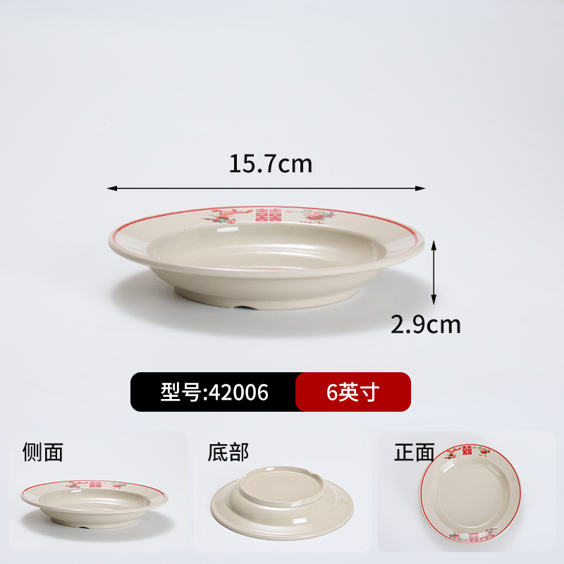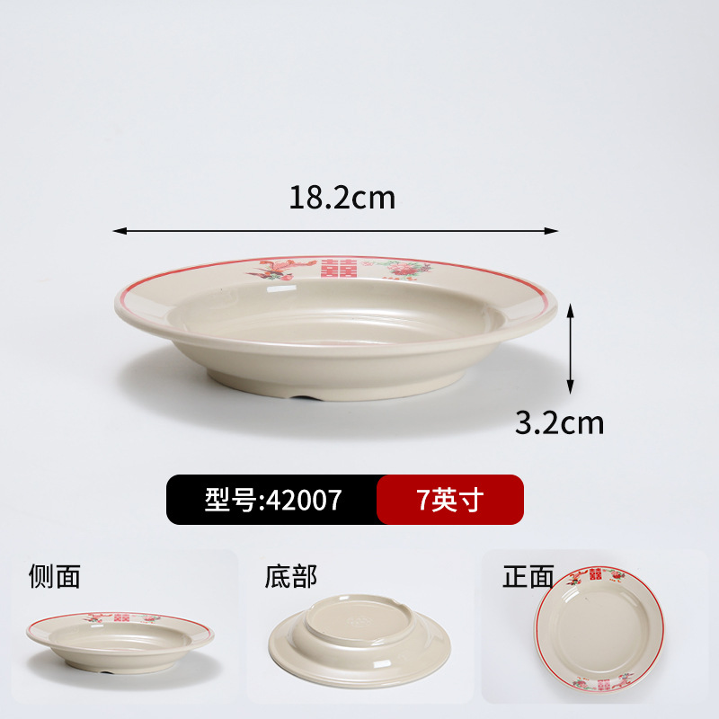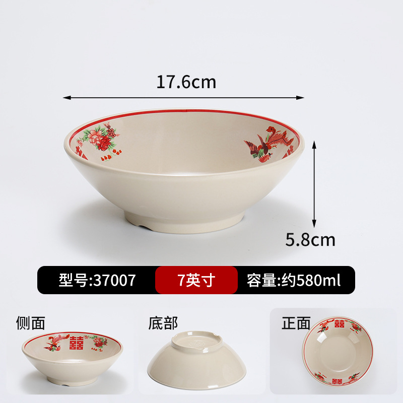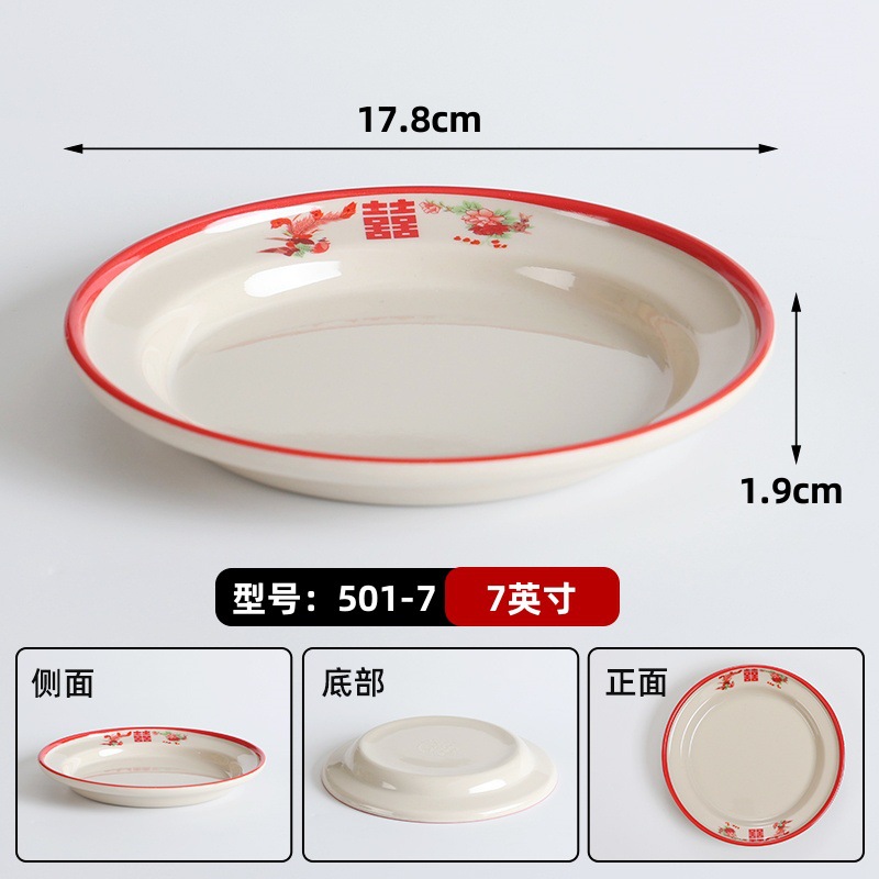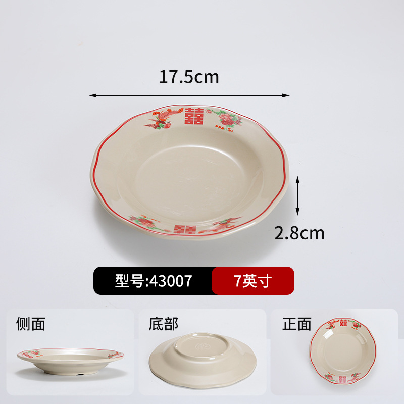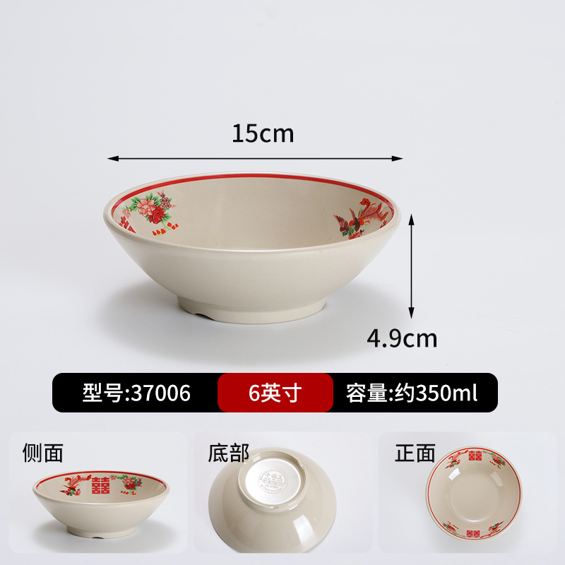 复古市井火锅摆台四件套商用密胺双喜菜碗喜字碗盘重庆老火锅餐具