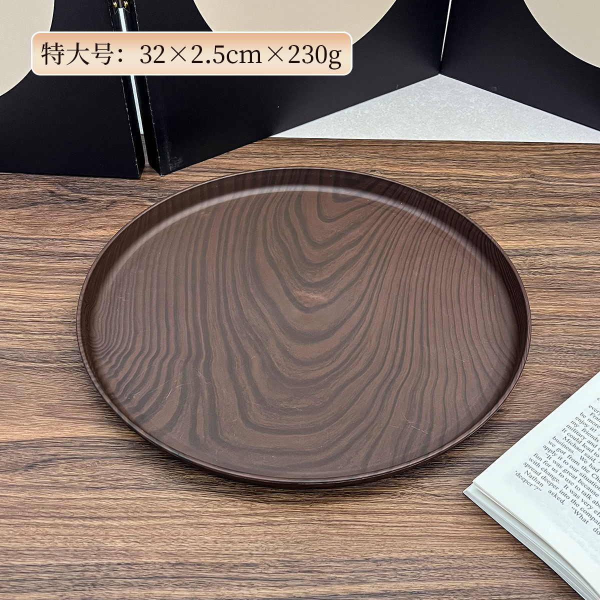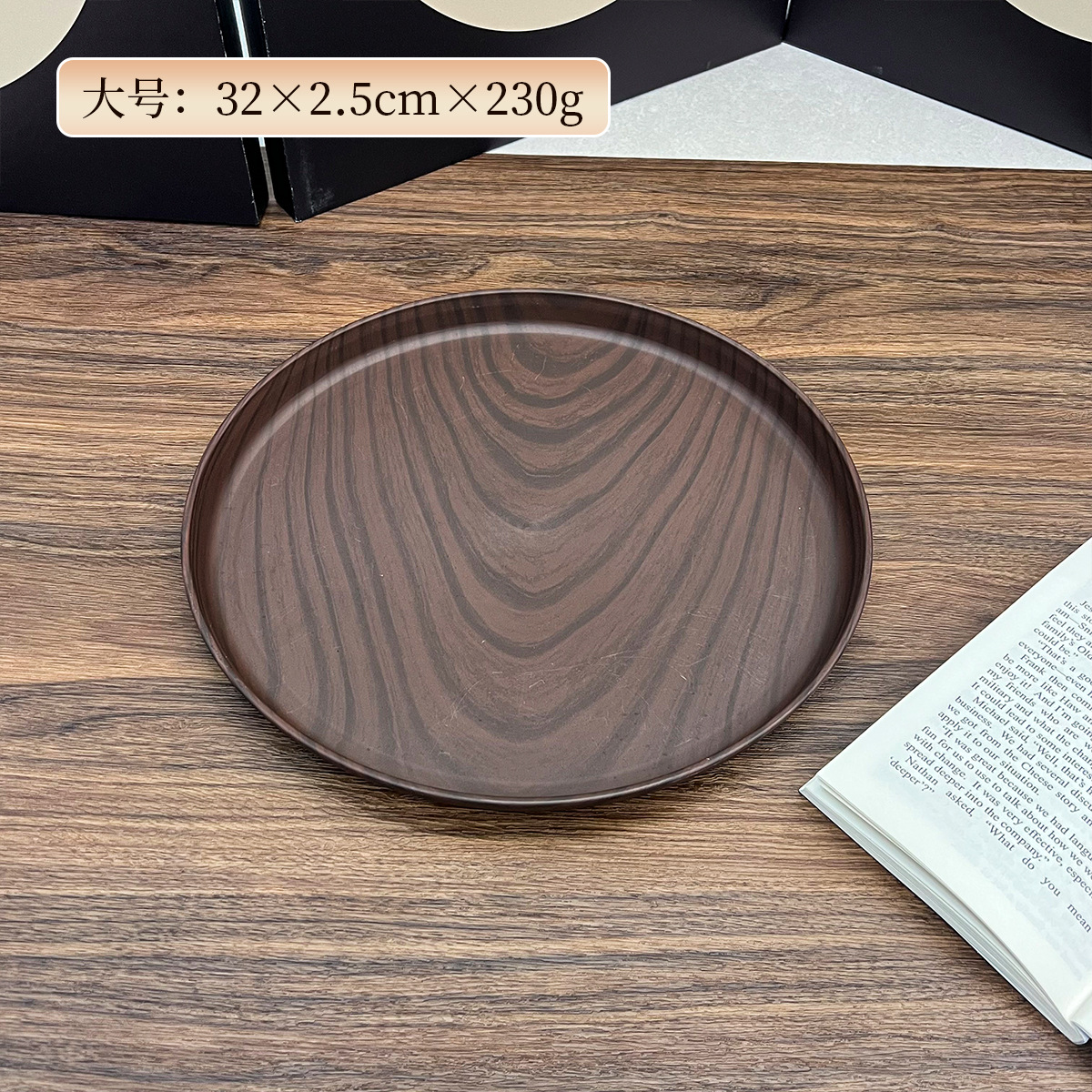 仿木纹托盘圆形塑料盘子ins餐盘茶盘家用水杯收纳盘咖啡厅蛋糕盘
