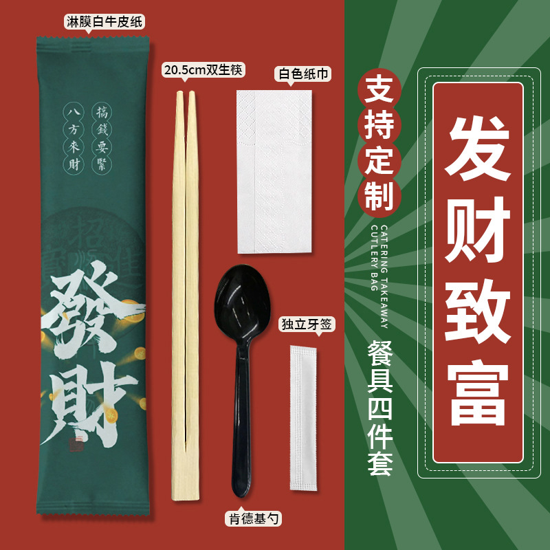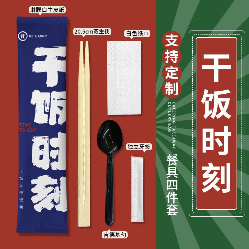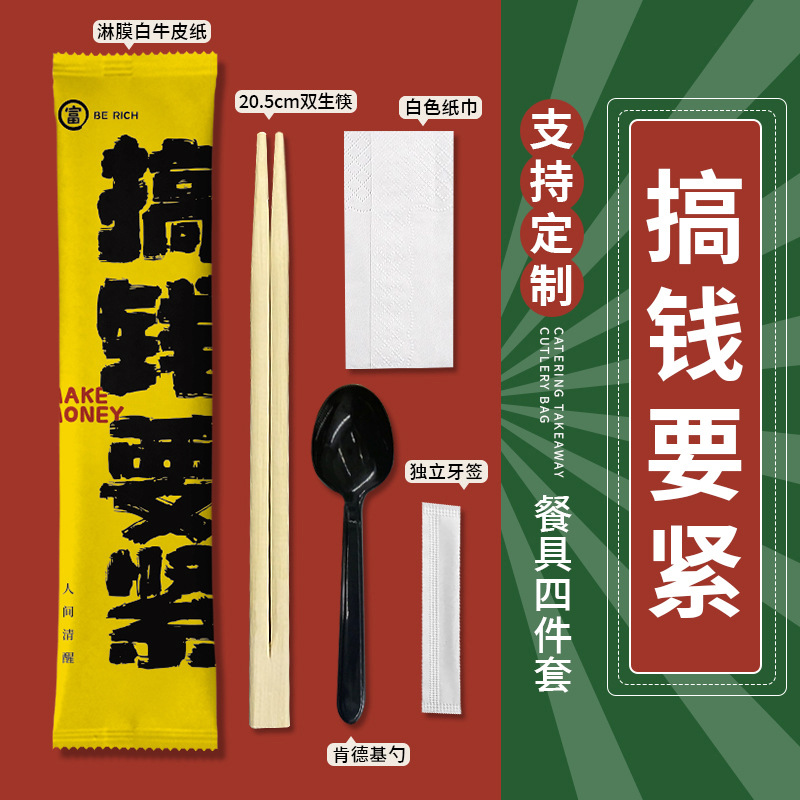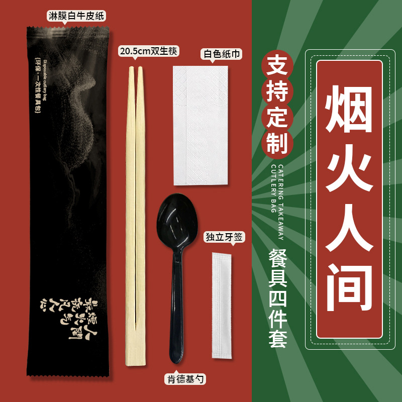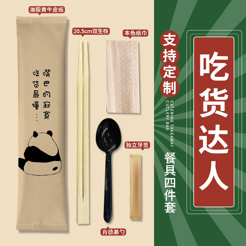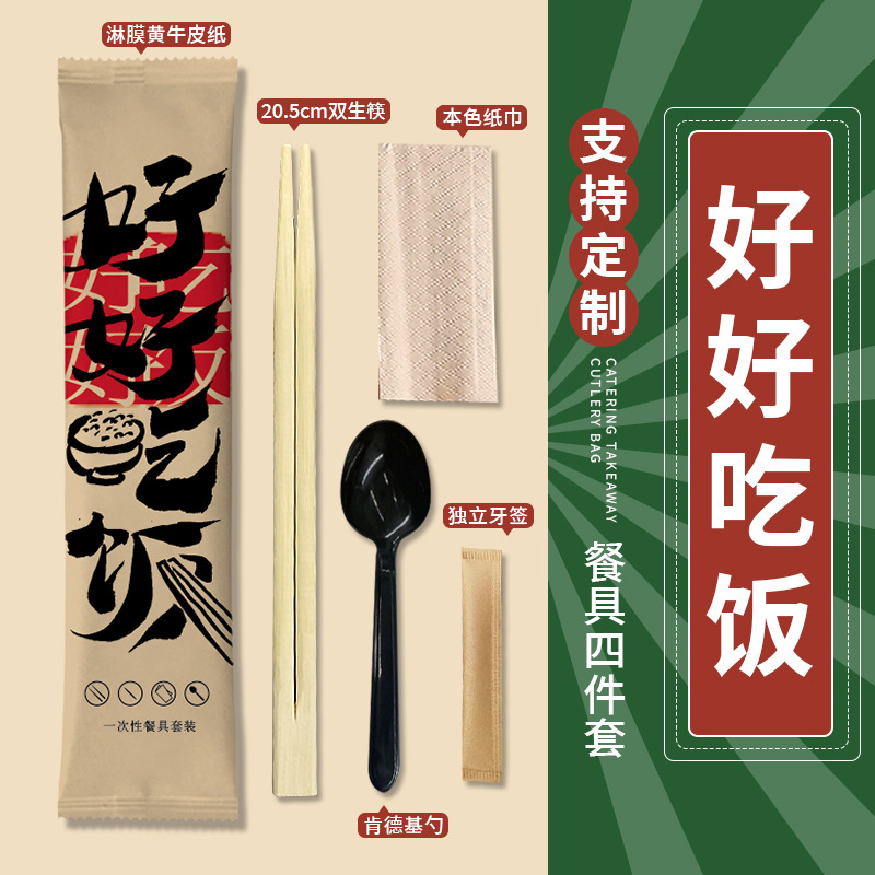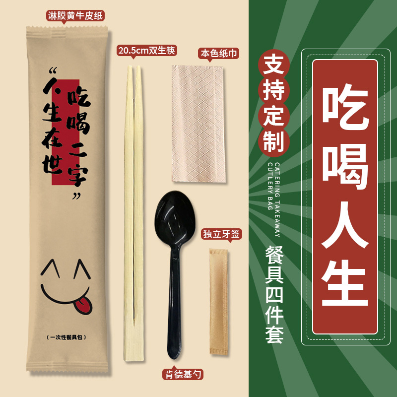 一次性筷子四件套牛皮纸商用定制批发外卖打包筷子勺子餐具套装