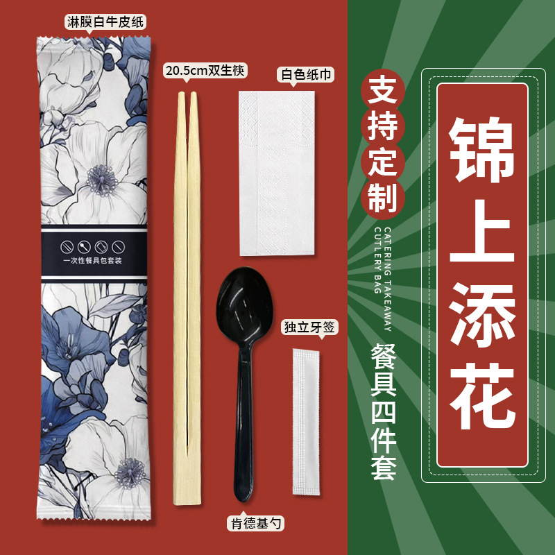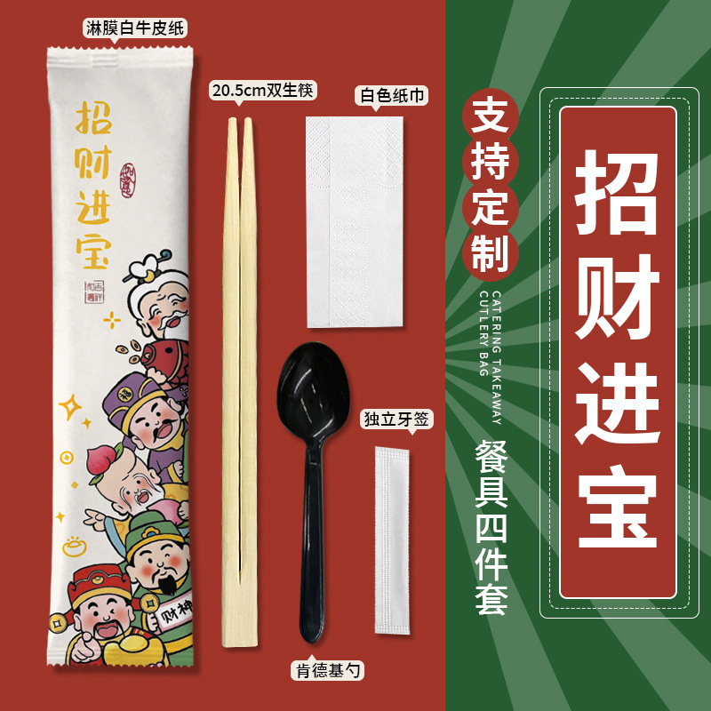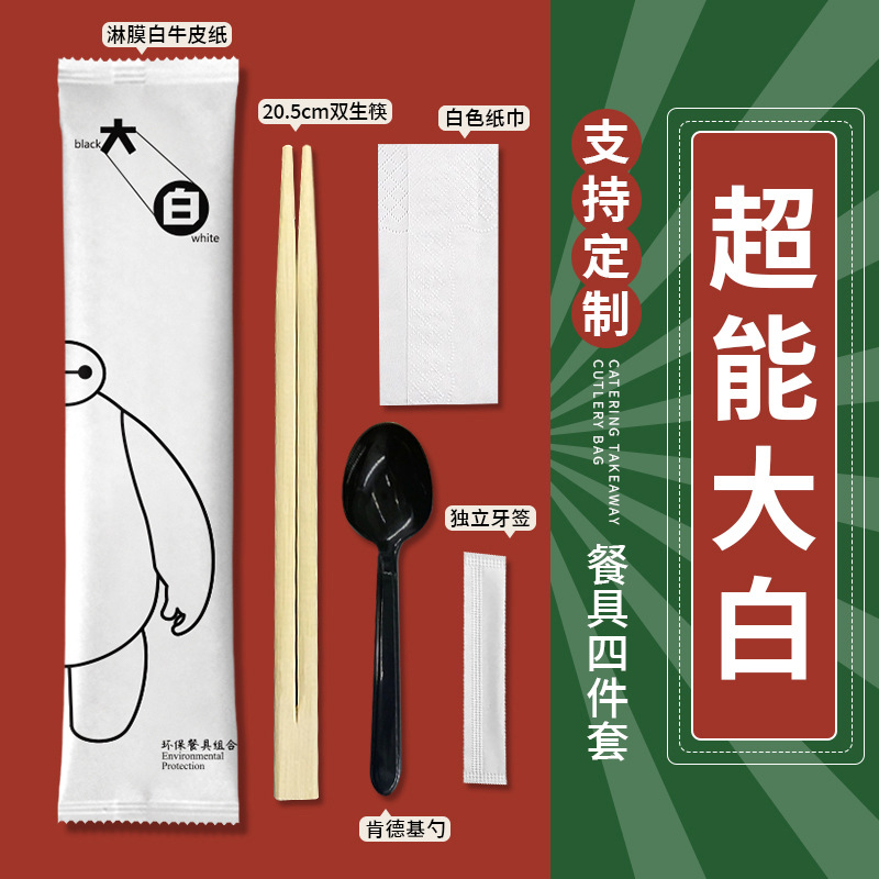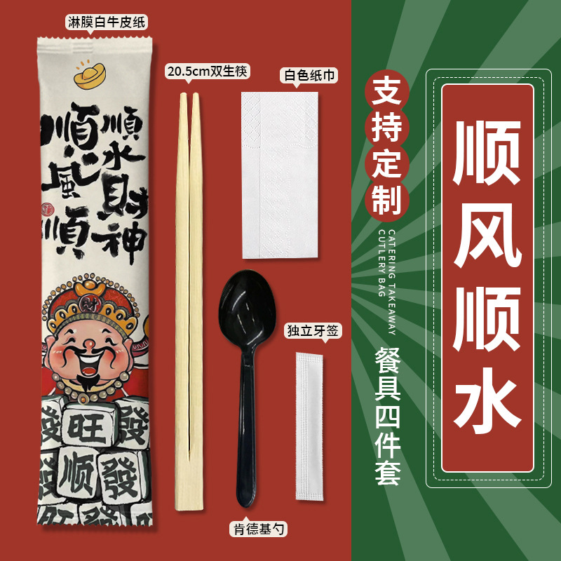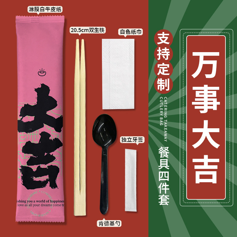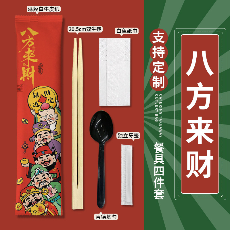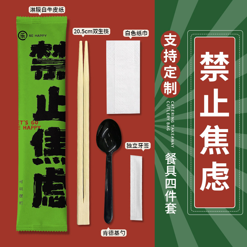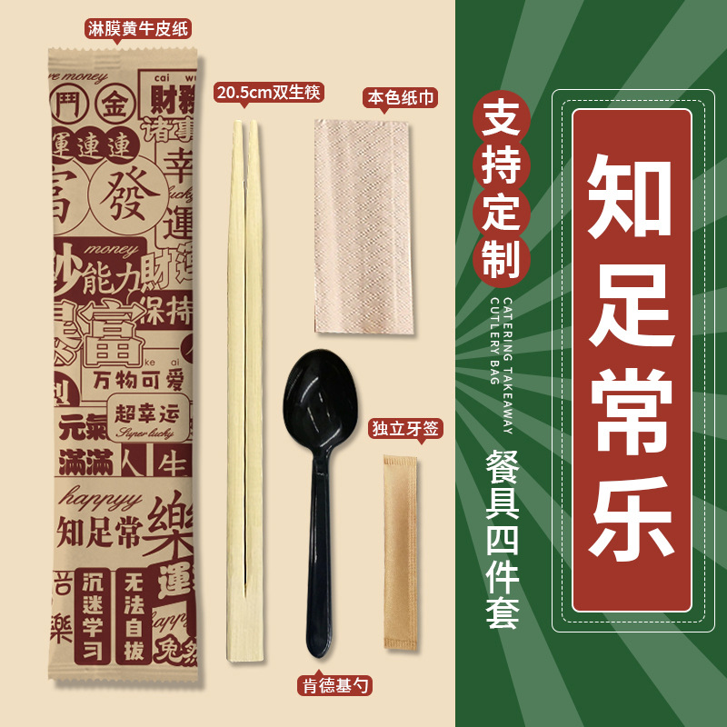 一次性筷子四件套牛皮纸商用定制批发外卖打包筷子勺子餐具套装
