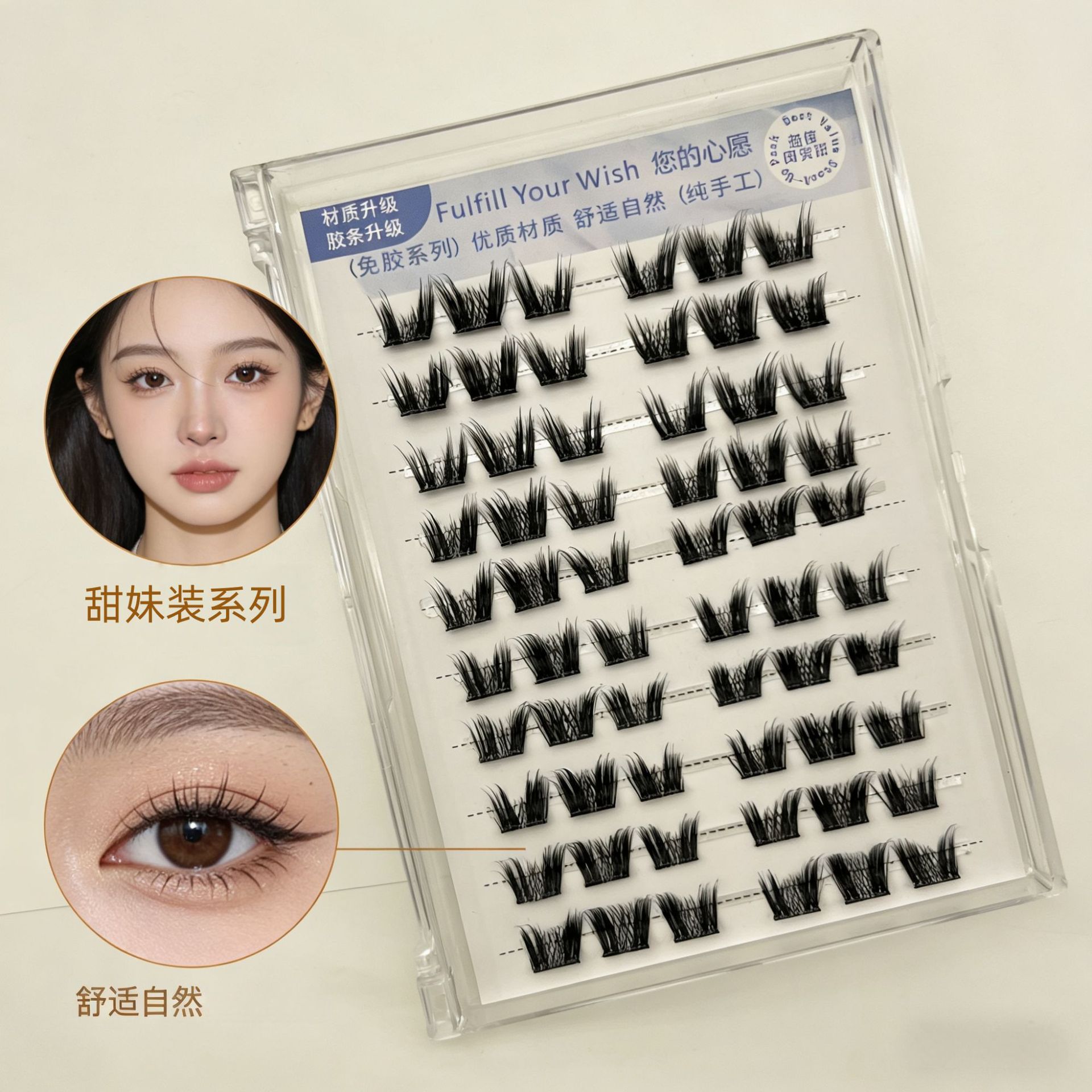 免胶全系列10排假睫毛妈生感单簇自然浓密卷翘真分段懒人单簇超软