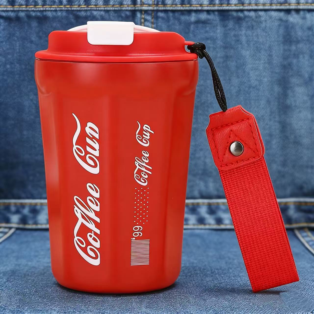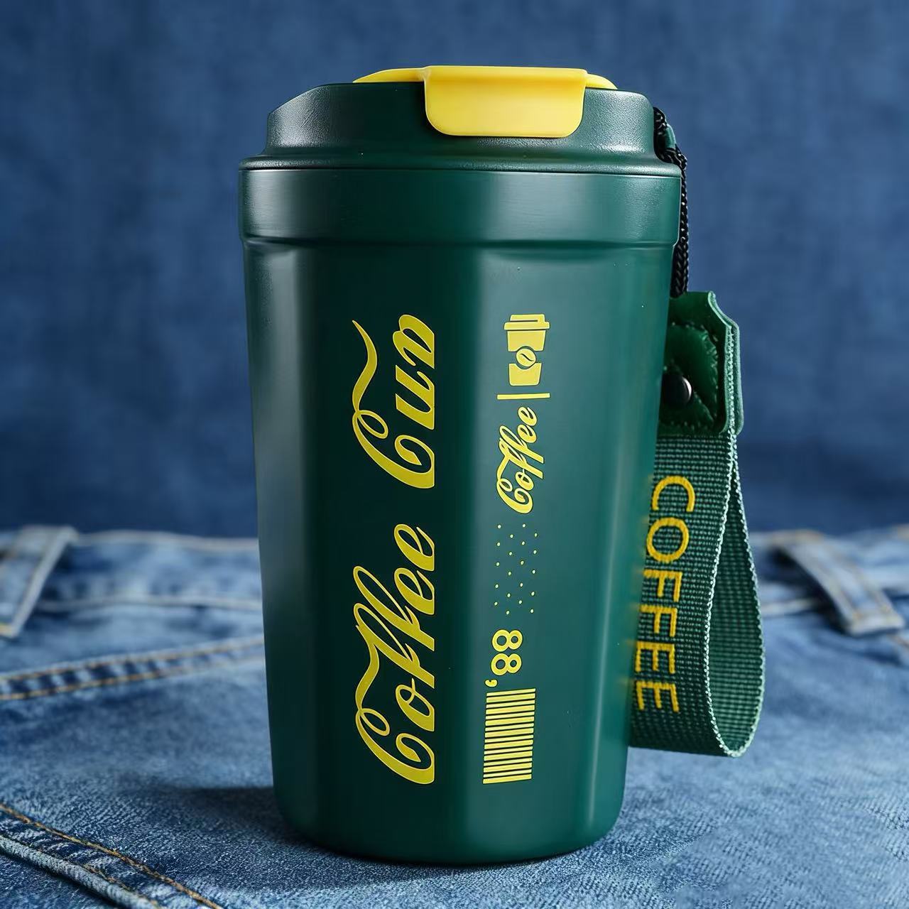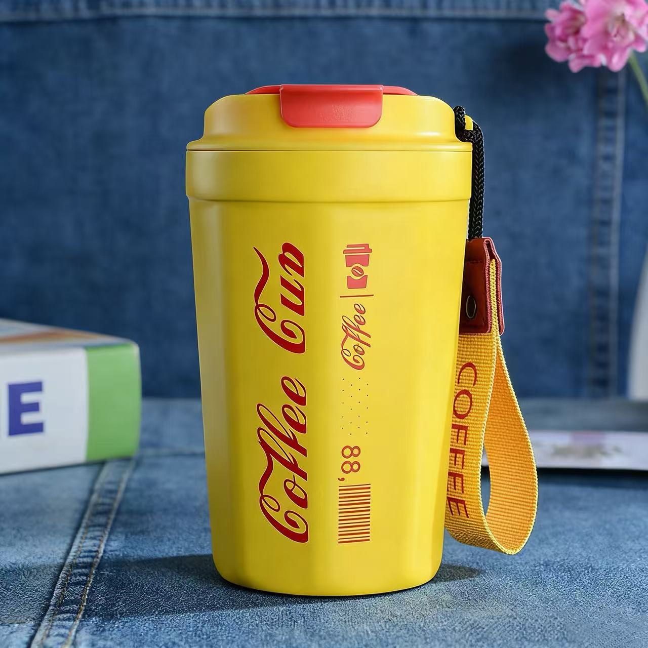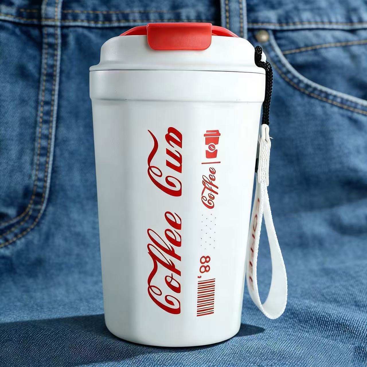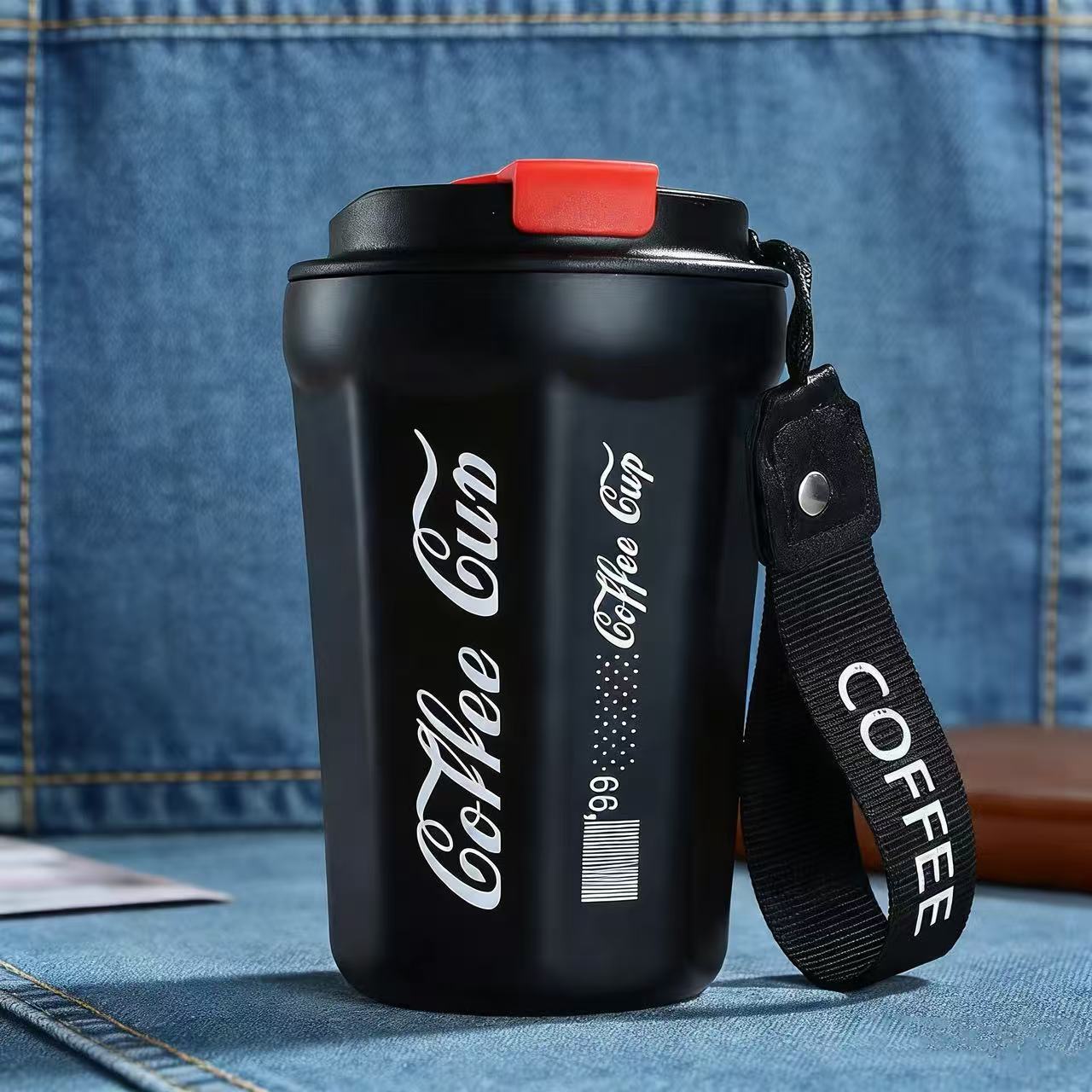 八角高颜值304不锈钢咖啡杯便携提绳车载保温杯