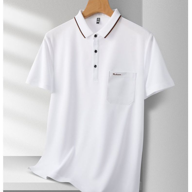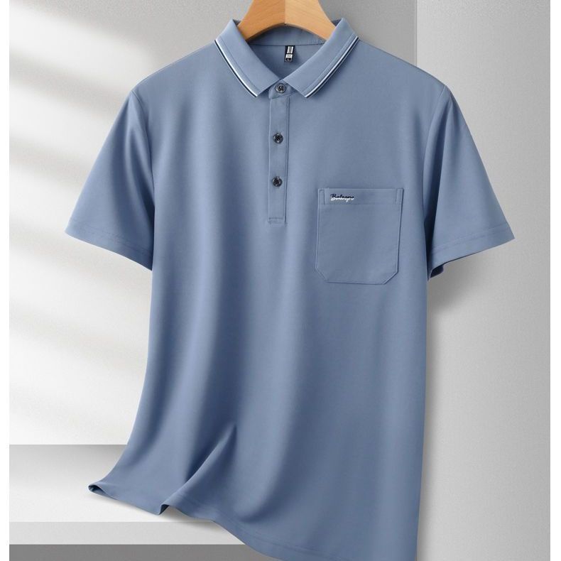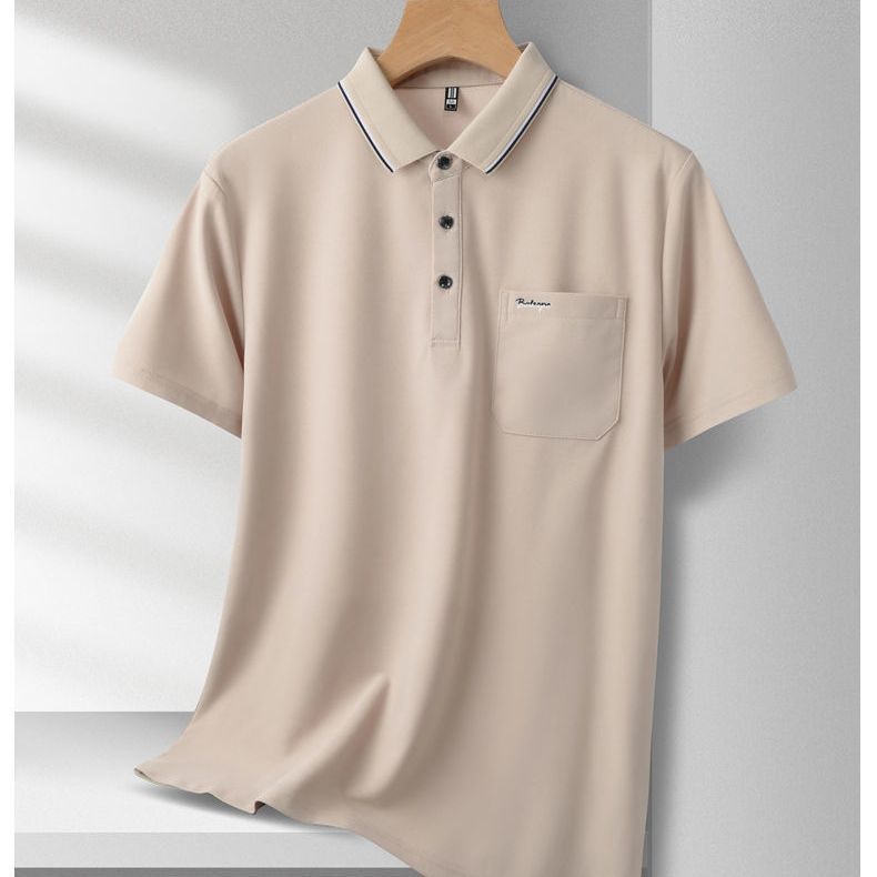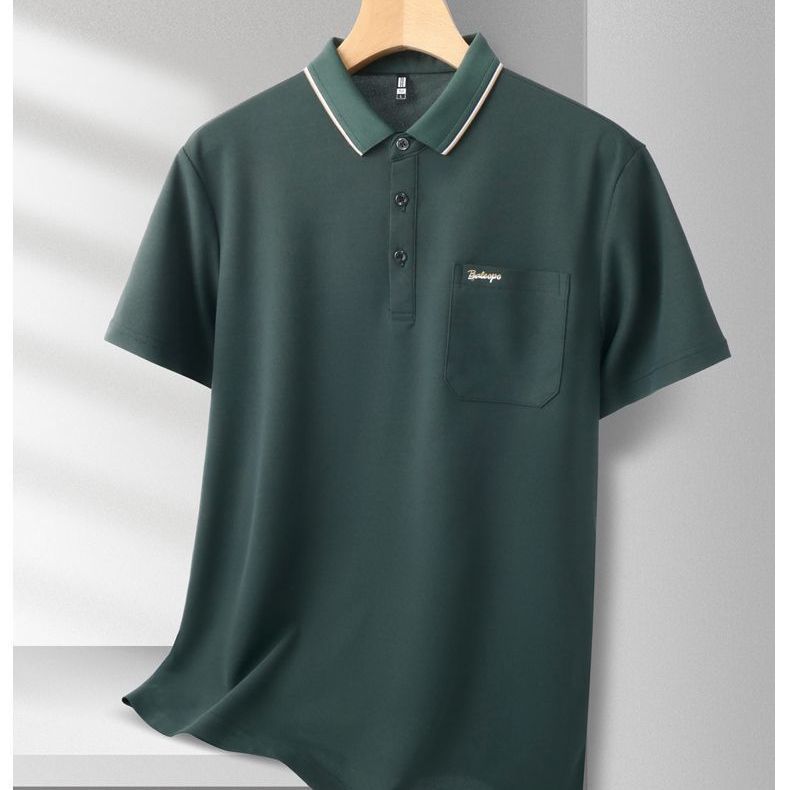 夏季新款男士短袖T恤真口袋刺绣翻领POLO衫商务半袖爸爸装