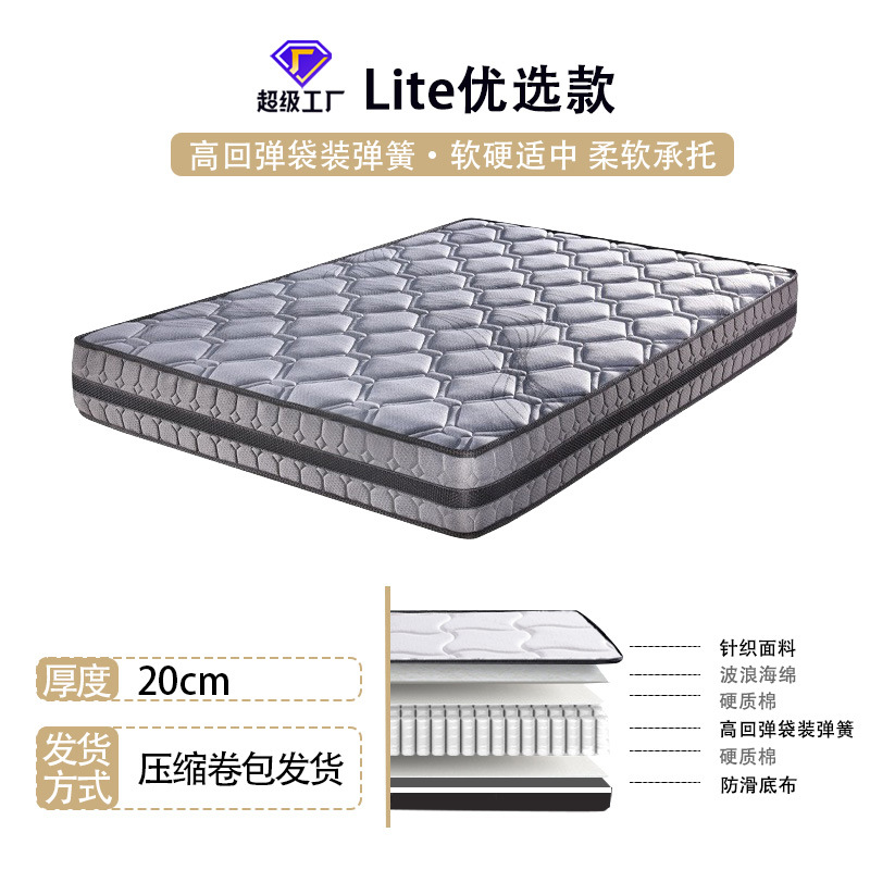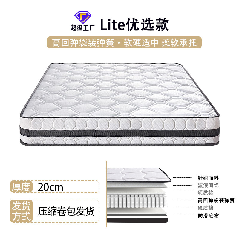 跨境外贸专供卷包压缩床垫席梦思独立弹簧床垫软硬酒店租房20cm厚