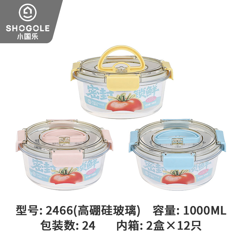 G20小国塑料厂家批发圆形玻璃保鲜盒可加热2466收纳盒冰箱密封盒