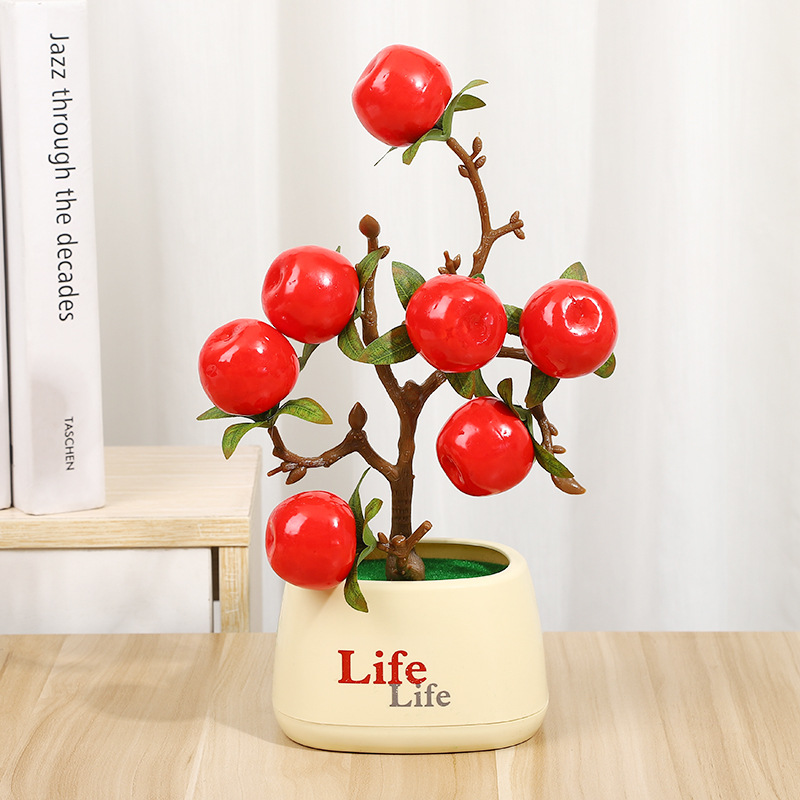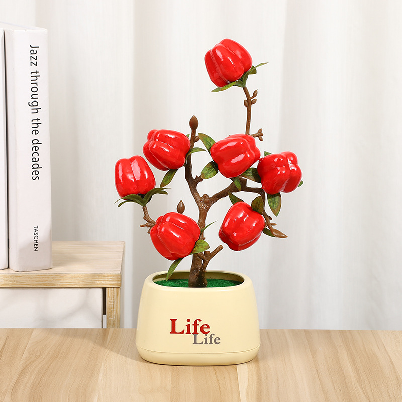 春节喜庆盆栽新年仿真红苹果红椒发财果树盆景客厅餐桌节庆布置