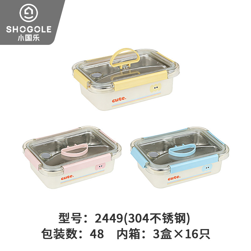 G20小国塑料厂家批发手提三格不锈钢密封饭盒2449带盖便当盒便携
