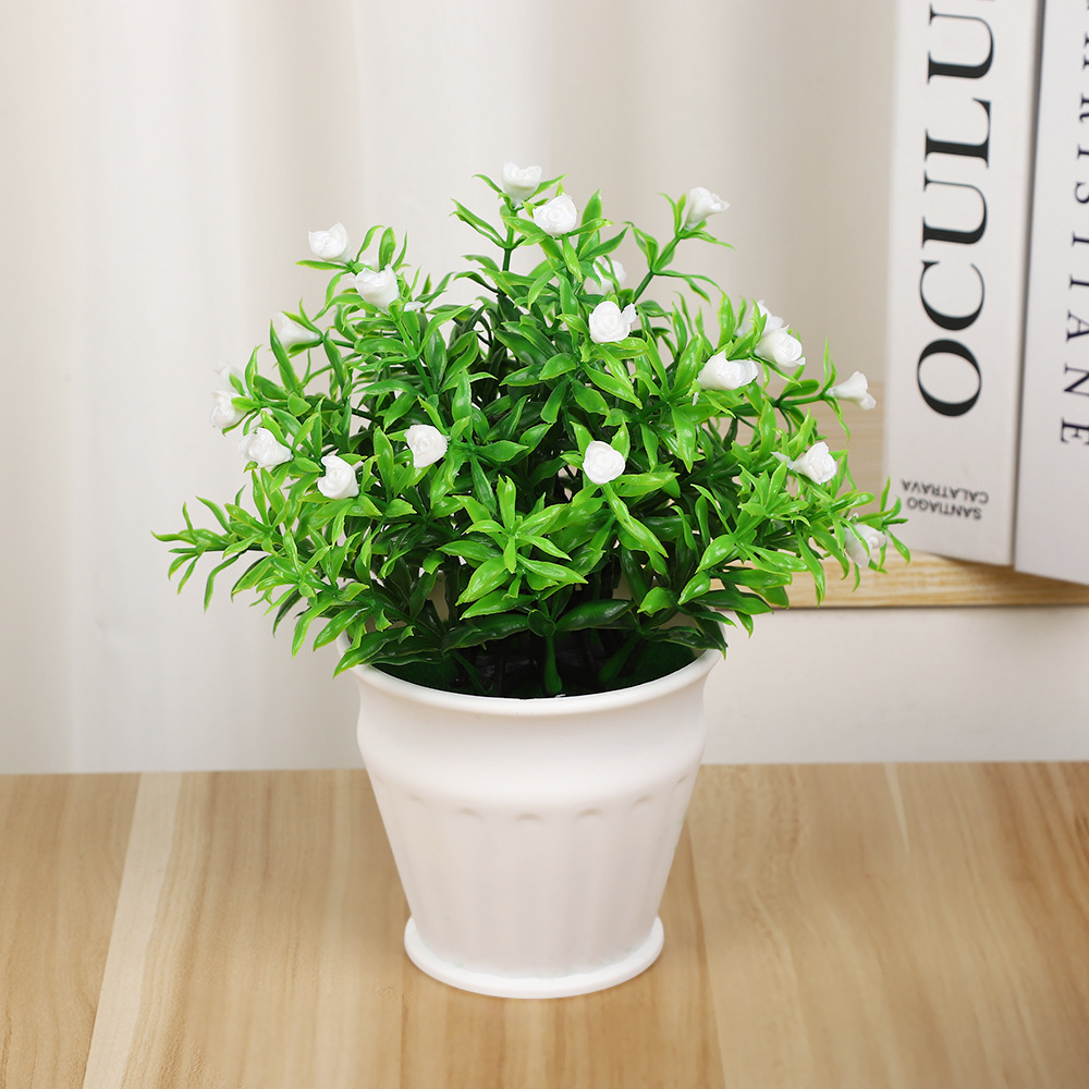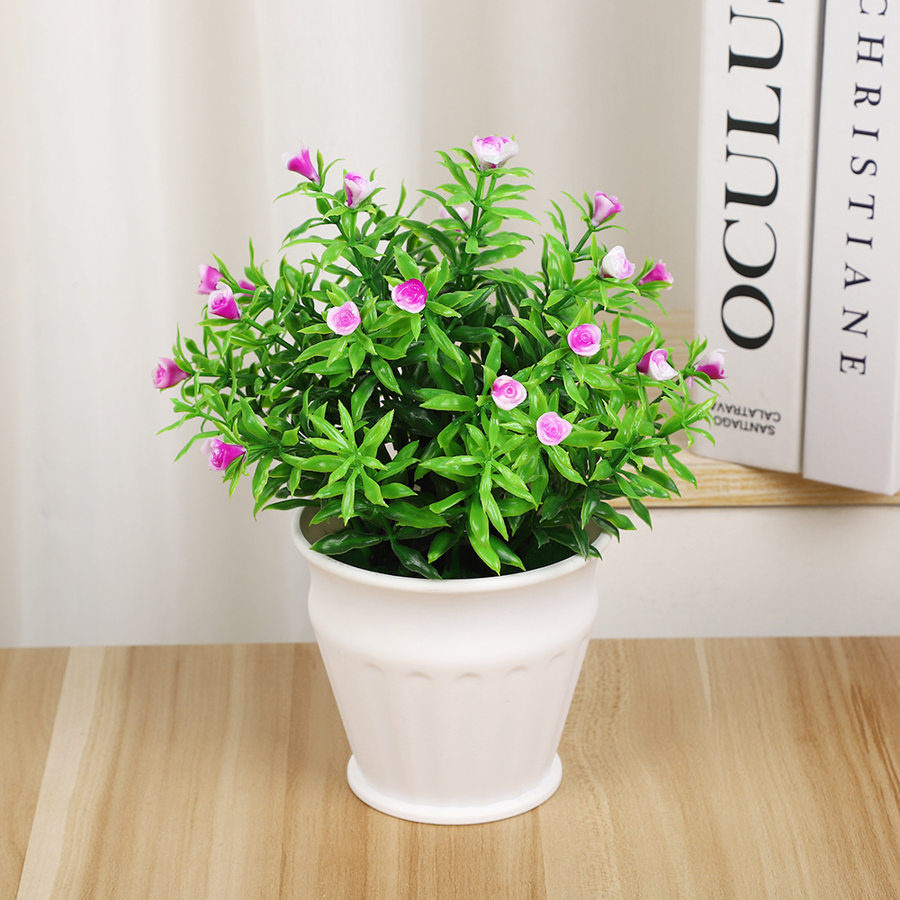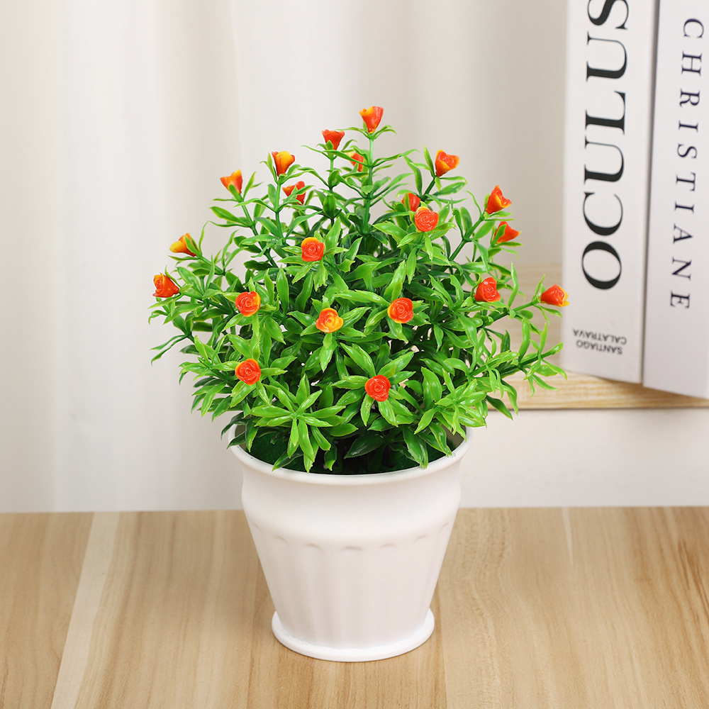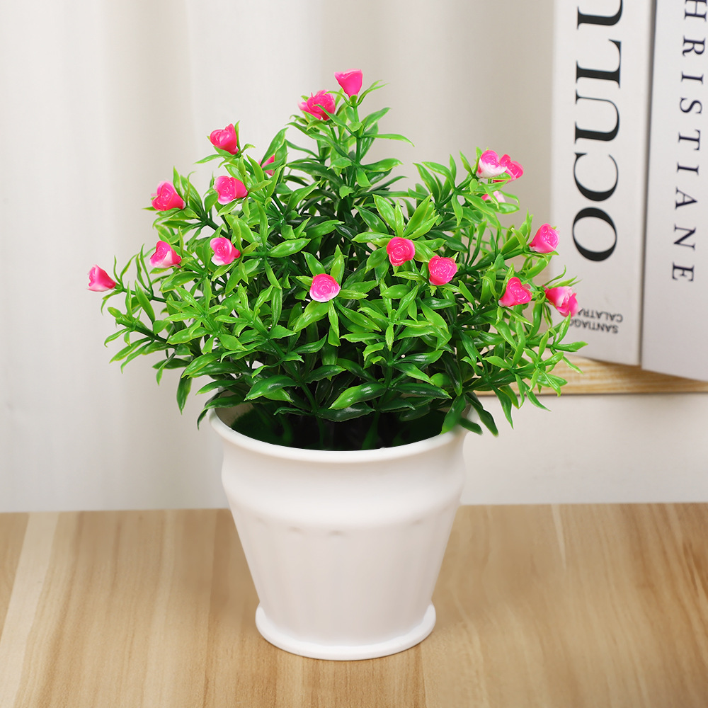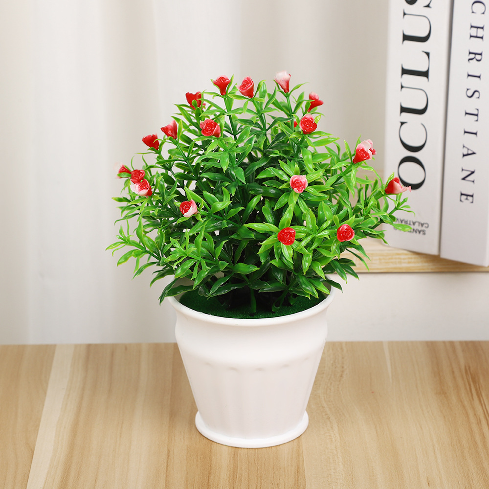 仿真小盆栽摆件高档31目实心玫瑰花 客厅办公室飘窗绿植假花摆件