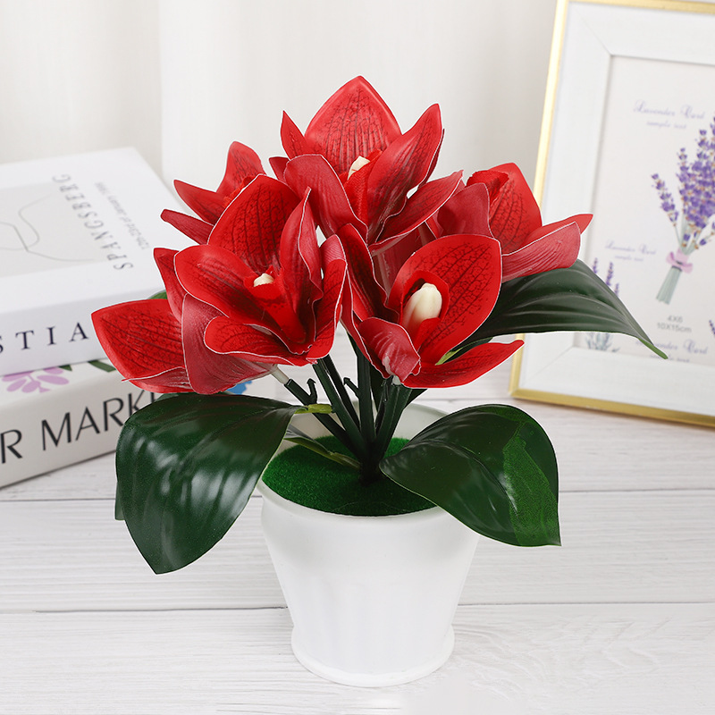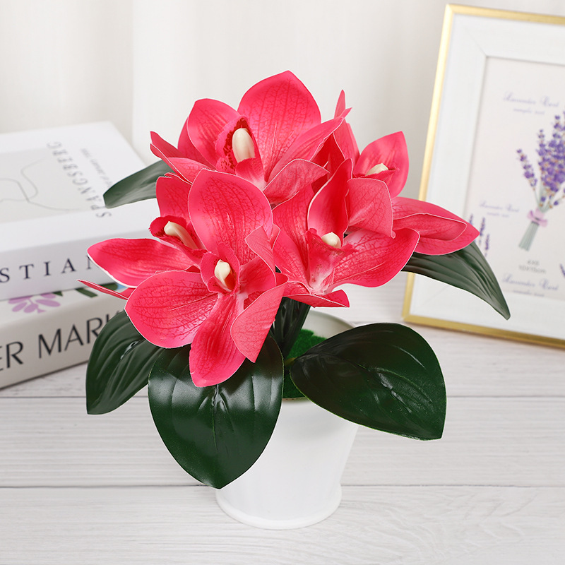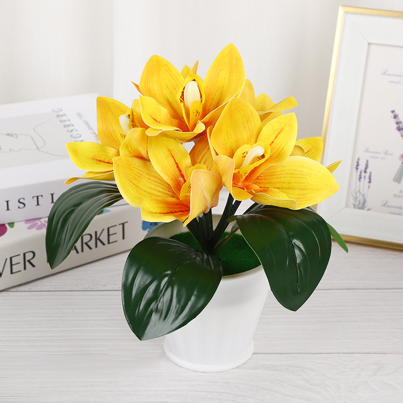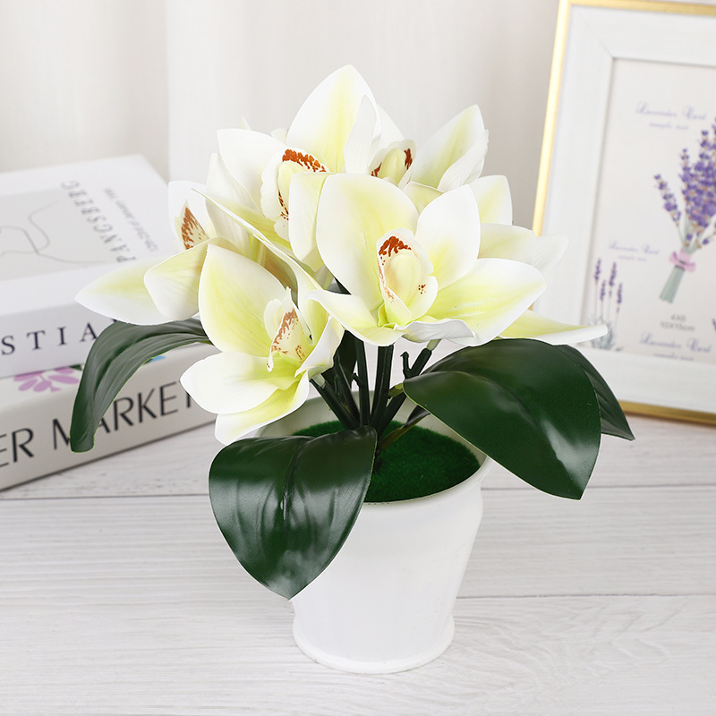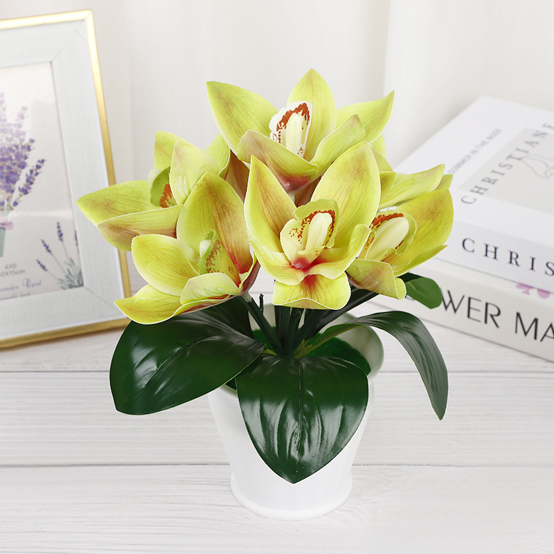 新款7朵大蕙兰仿真盆栽婚庆摄影环保逼真仿真花绿植盆栽摆件道具
