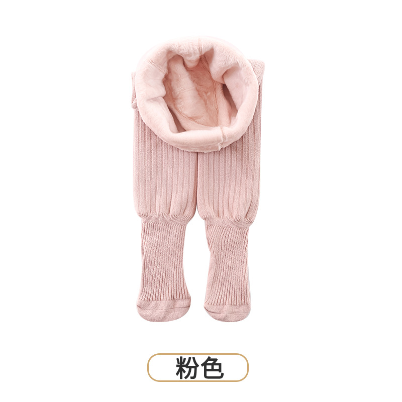 竖条纹保暖纯色甜美公主儿童连裤袜冬季加绒加厚抗起球女童打底裤