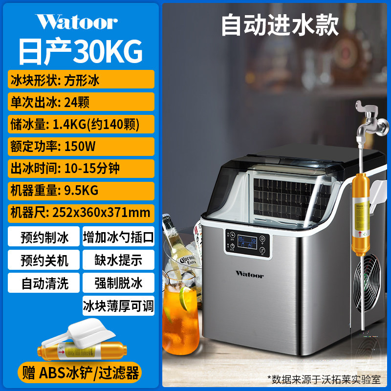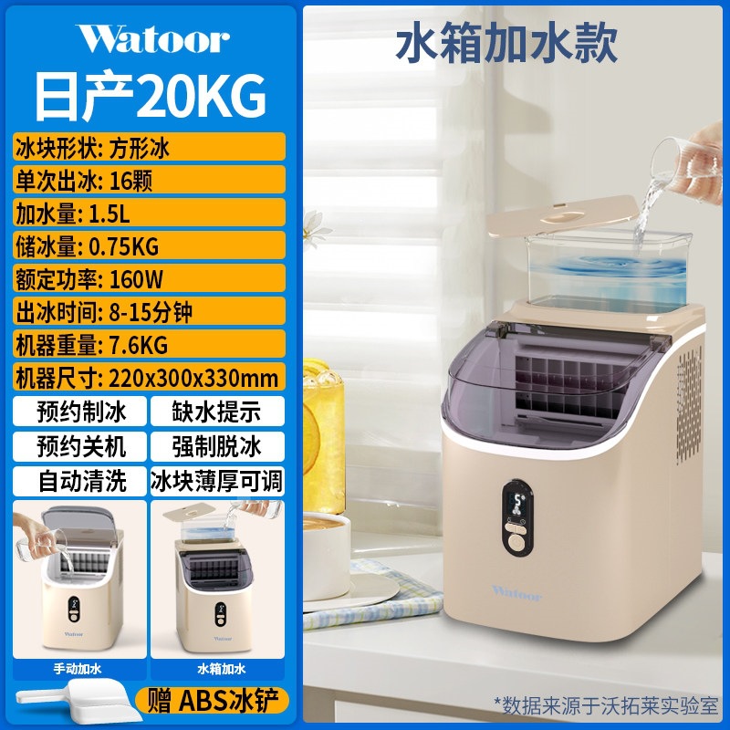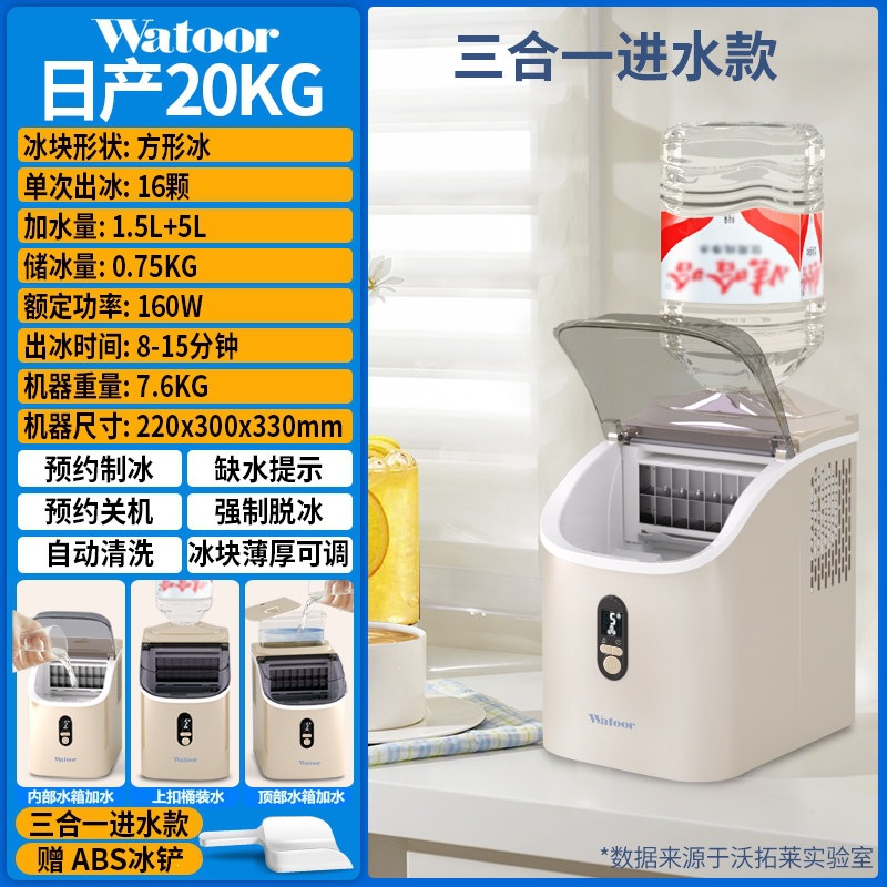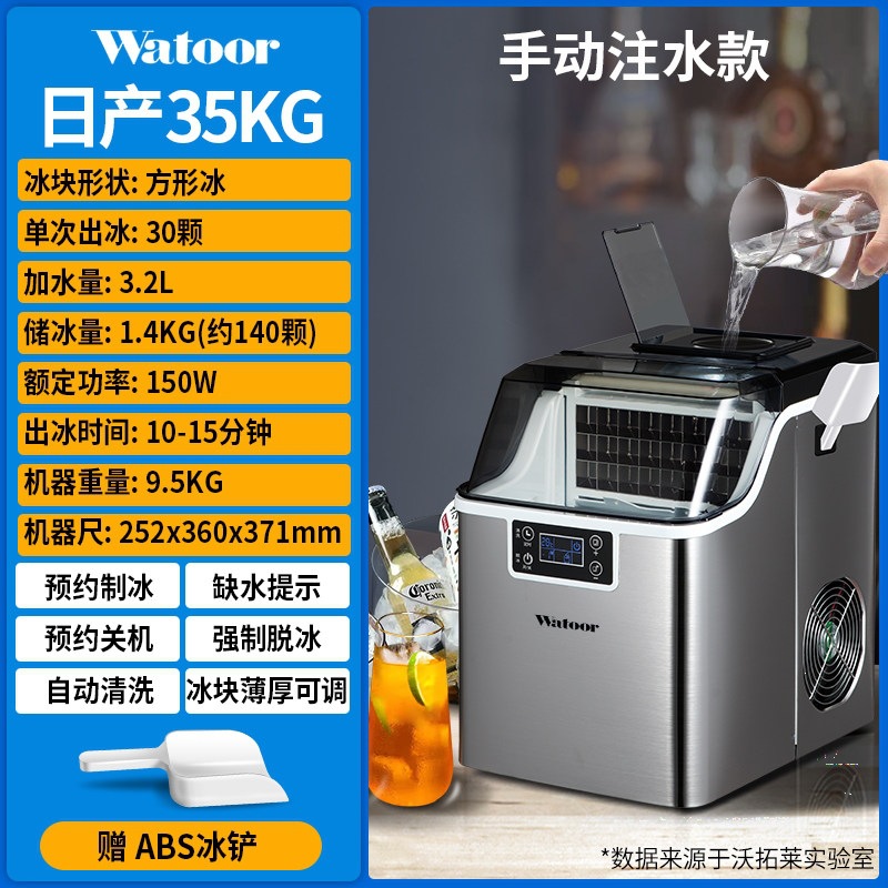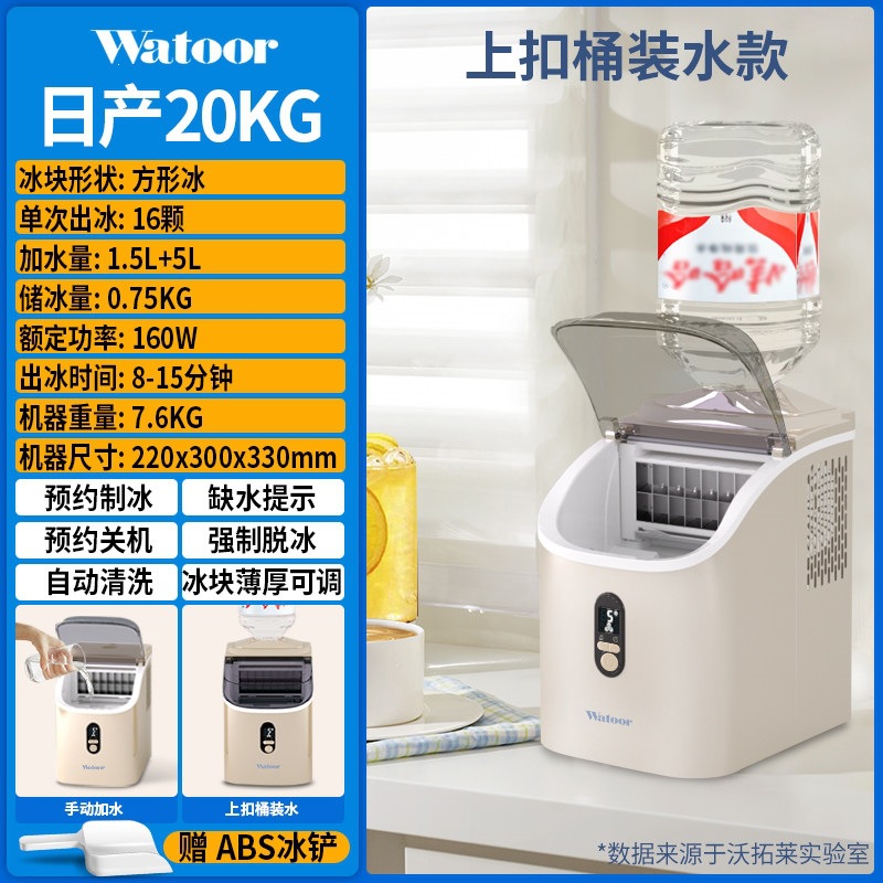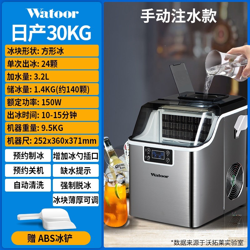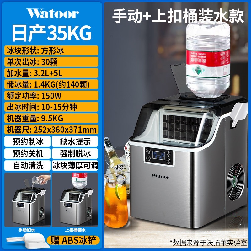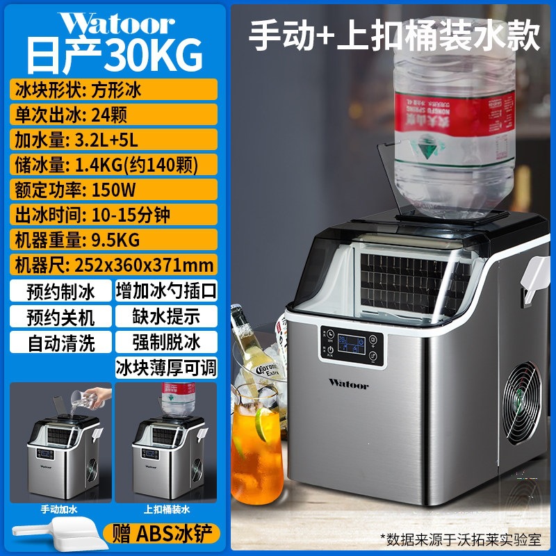 沃拓莱商用家用小型奶茶店制冰机手动桶装水30公斤宿舍吧台冰块机