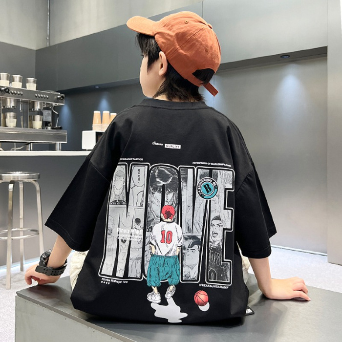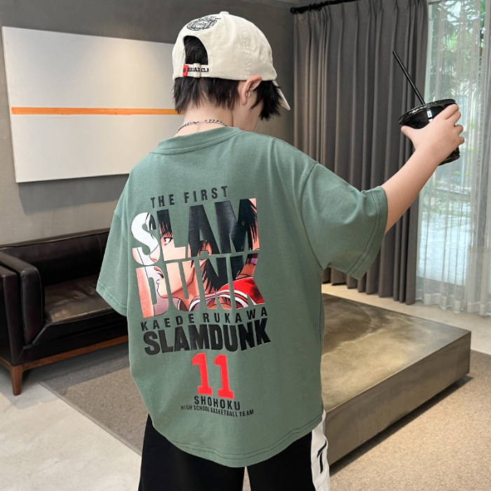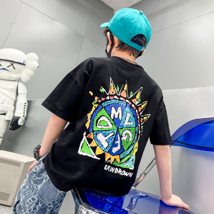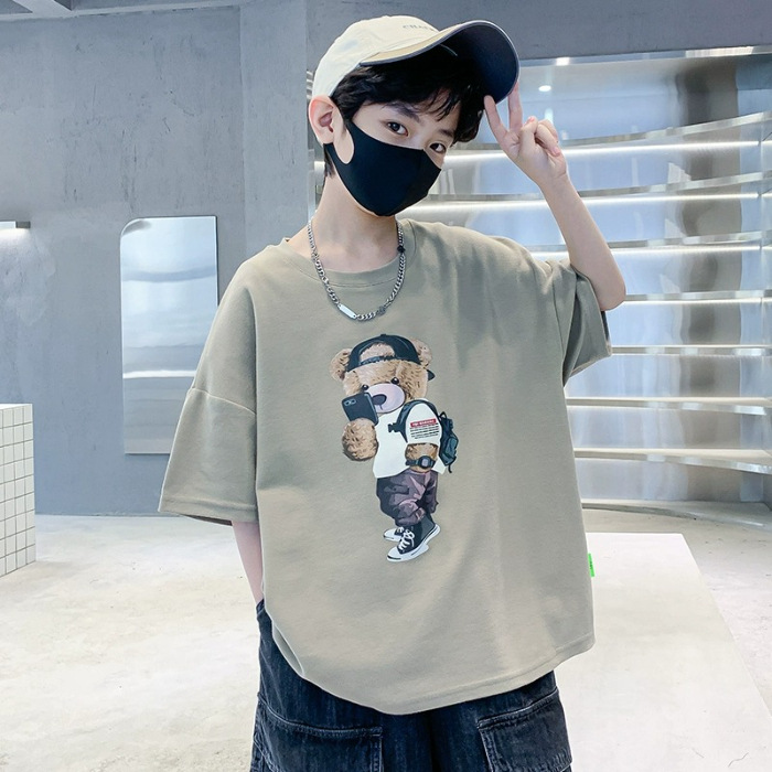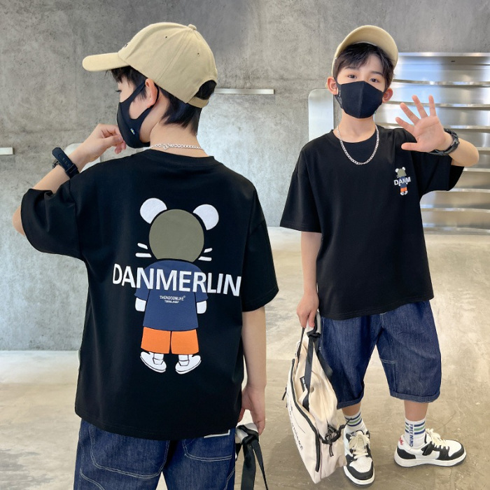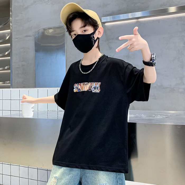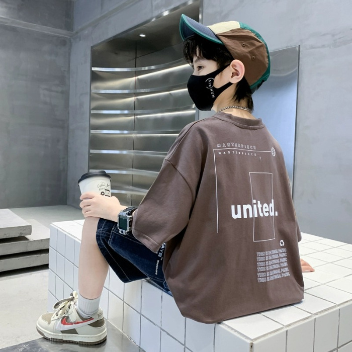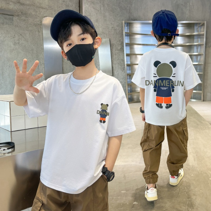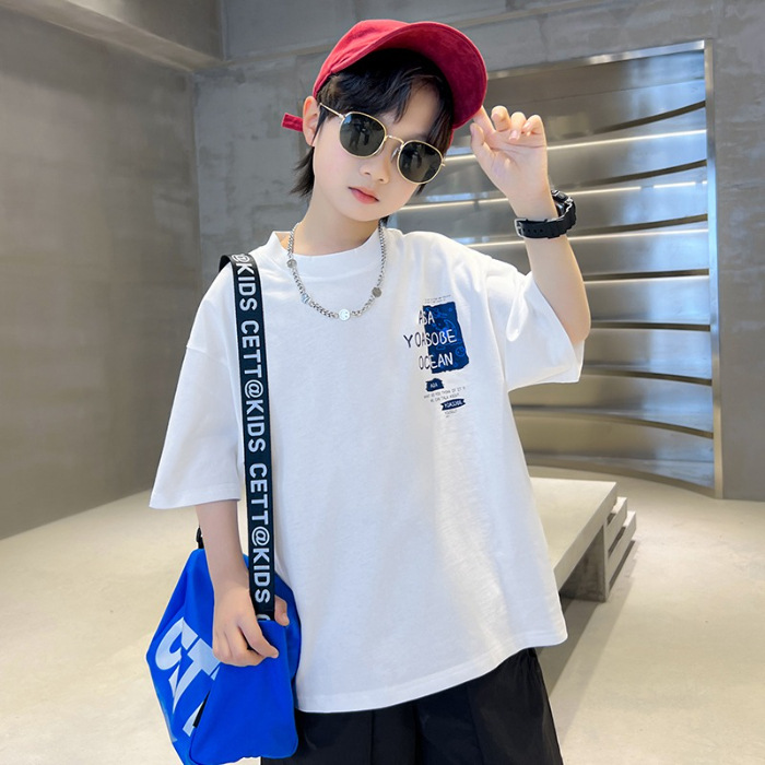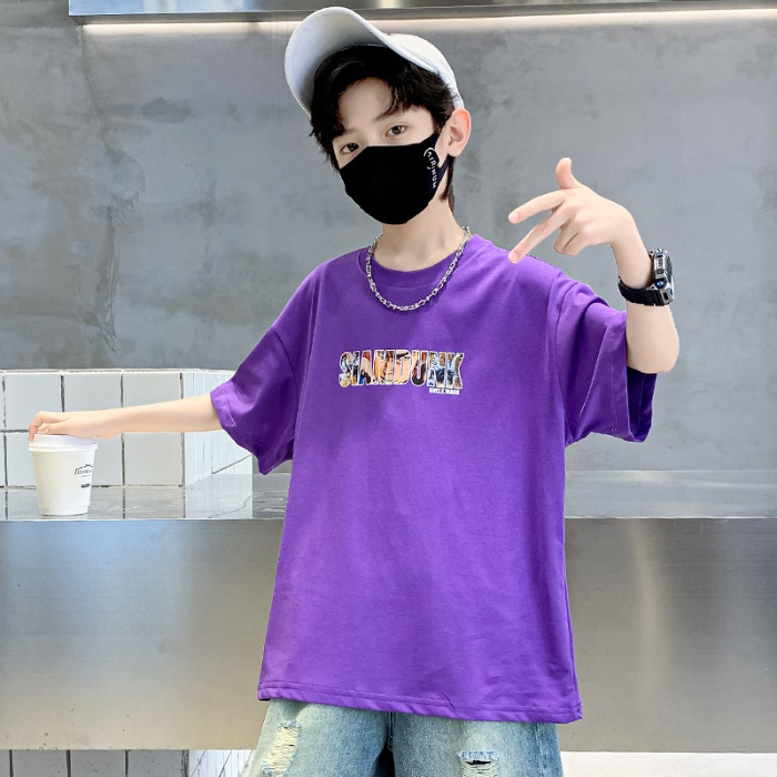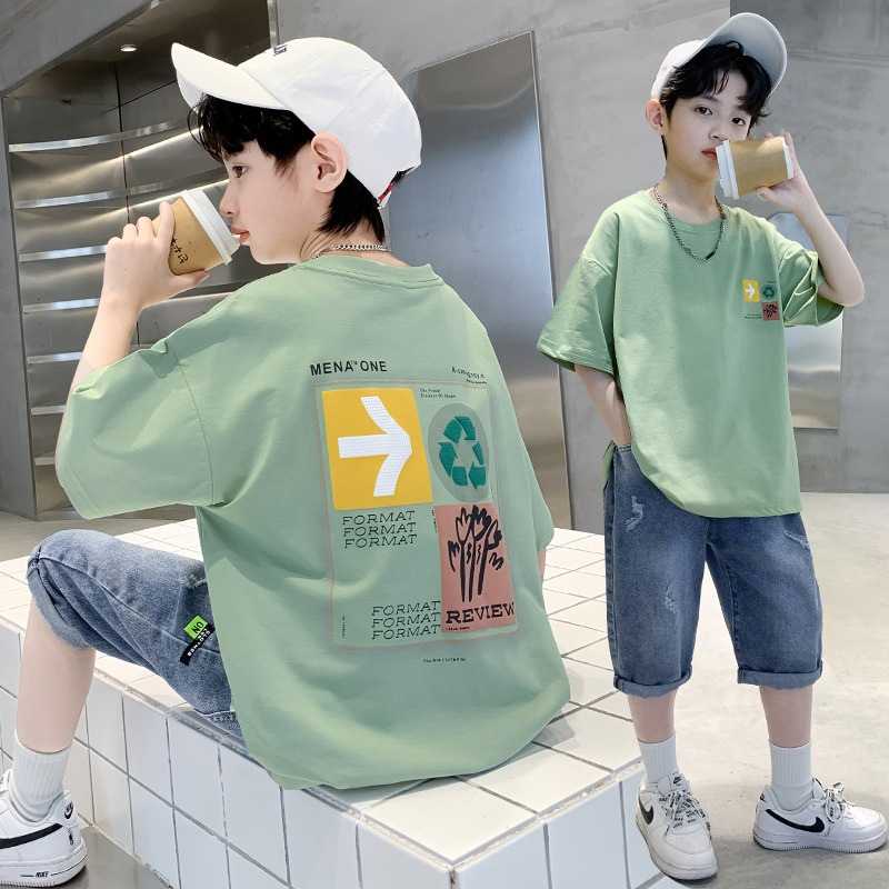 男童t恤短袖2026新款夏季小学生炸街纯棉红色半袖上衣夏装男孩潮T