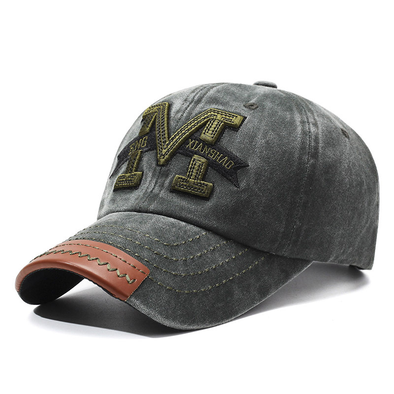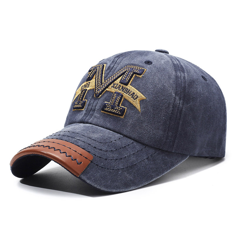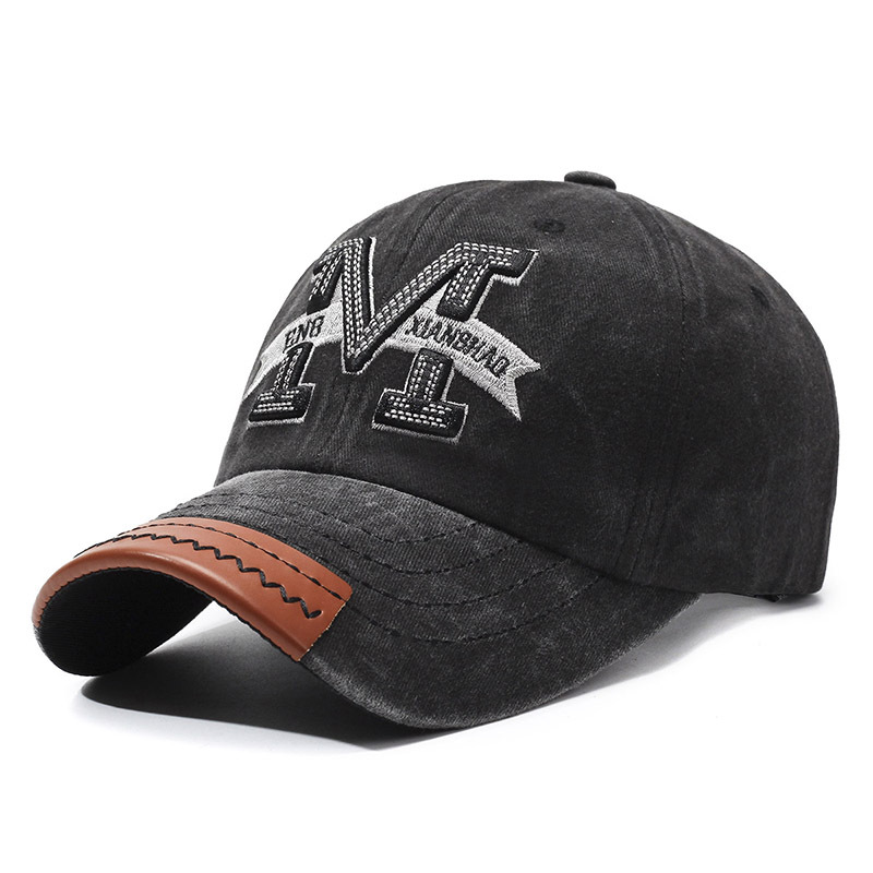 跨境帽子欧美复古男水洗褪色做旧牛仔帽M字母纯棉软顶刺绣棒球帽