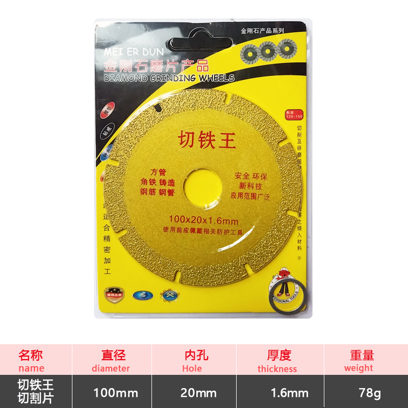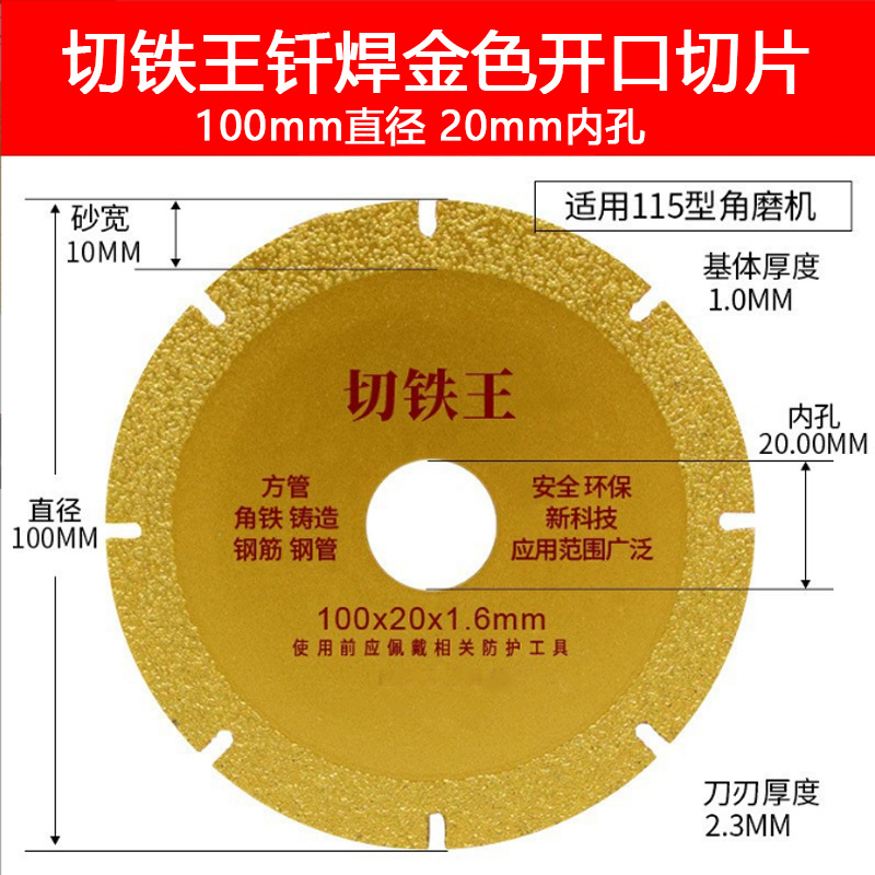 【切铁王钎焊金色开口切片Φ100内孔20】无包装