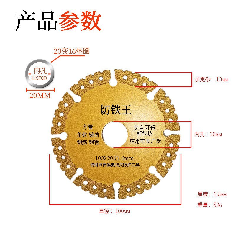 切铁王金刚石切割片钎焊切片金属合金钢筋球角磨机切片不锈钢锯片