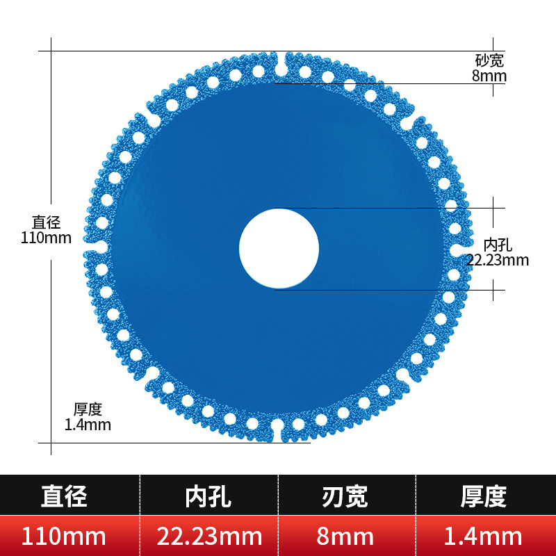 φ110多功能切割片出口型22.23孔(蓝色裸片84克)