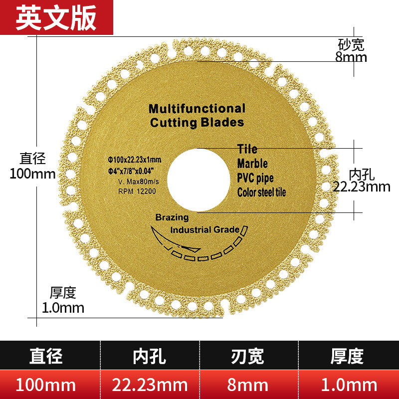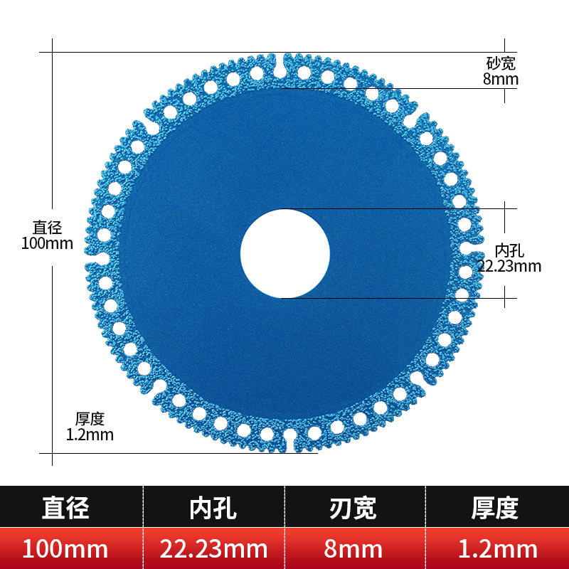 φ100多功能切割片出口型22.23孔(蓝色裸片69克)