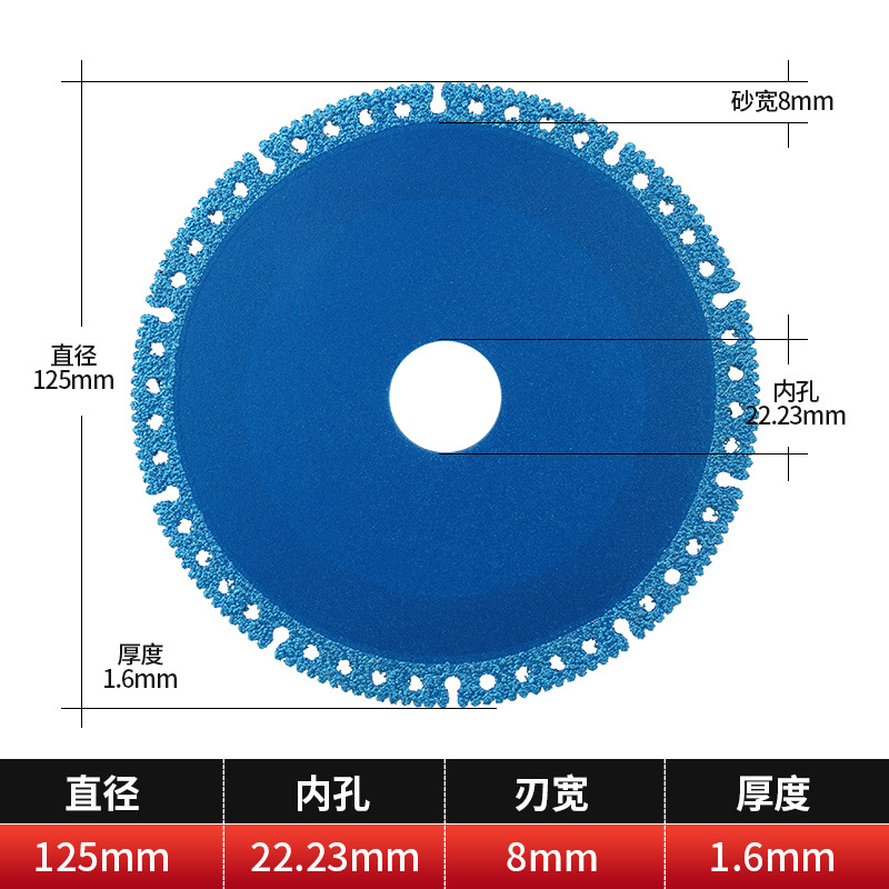 φ125多功能切割片出口型22.23孔(蓝色裸片110克)