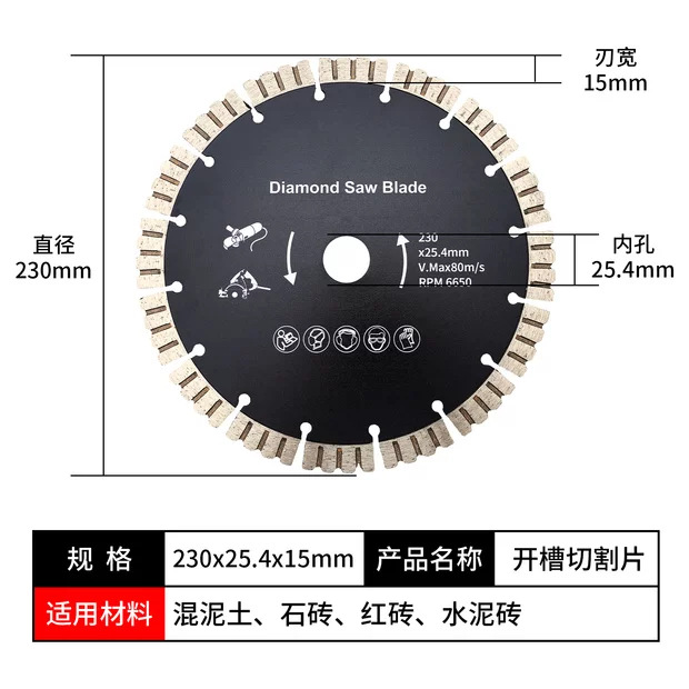 烧结金刚石锯片花岗岩混凝土石材切割片墙槽开槽干切片