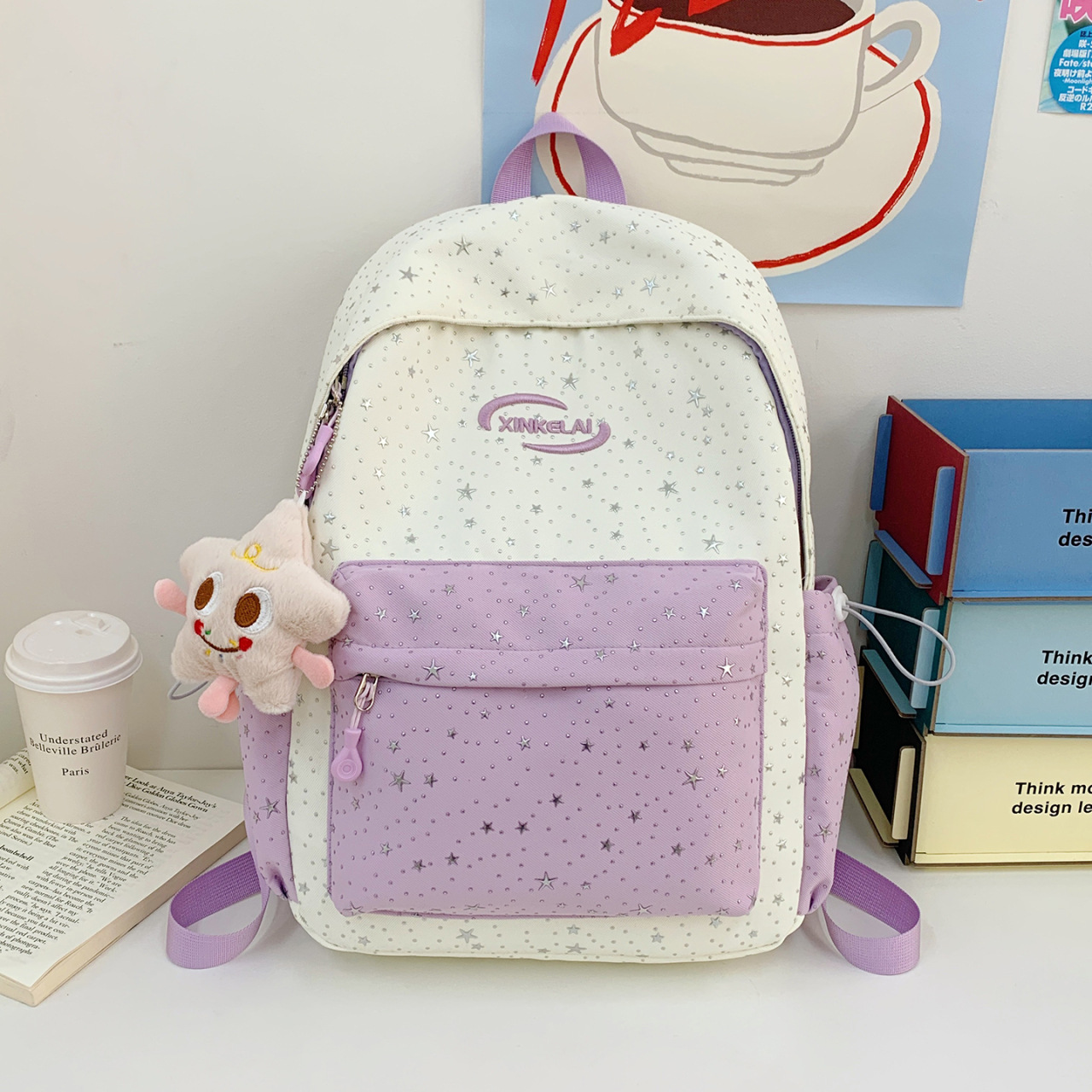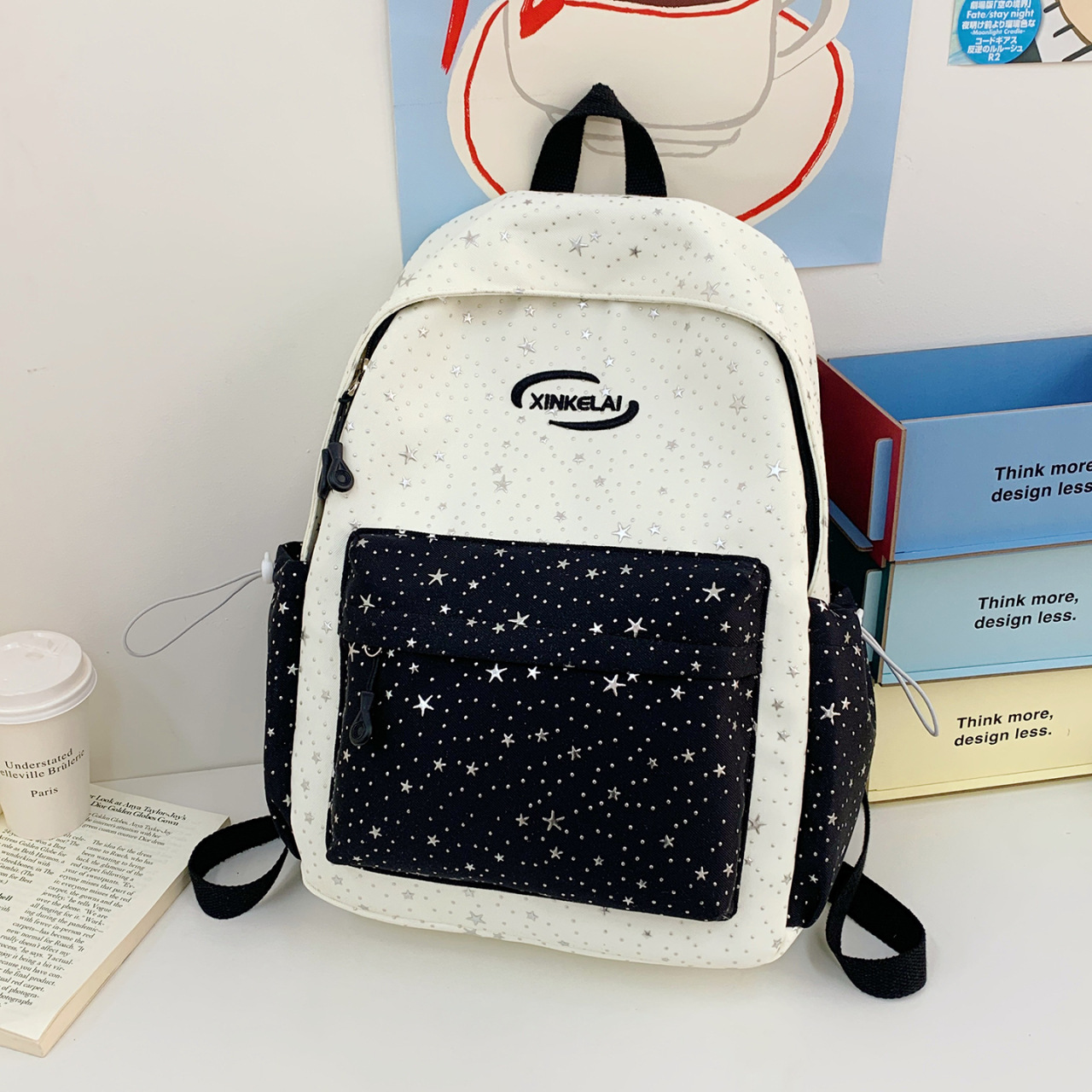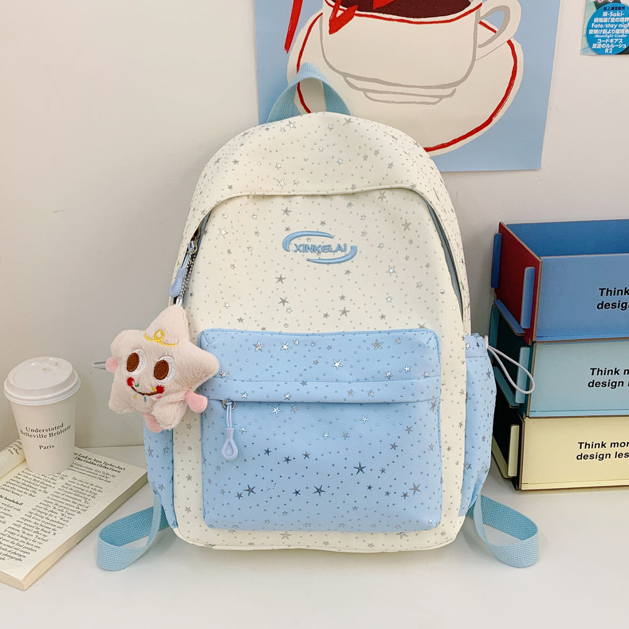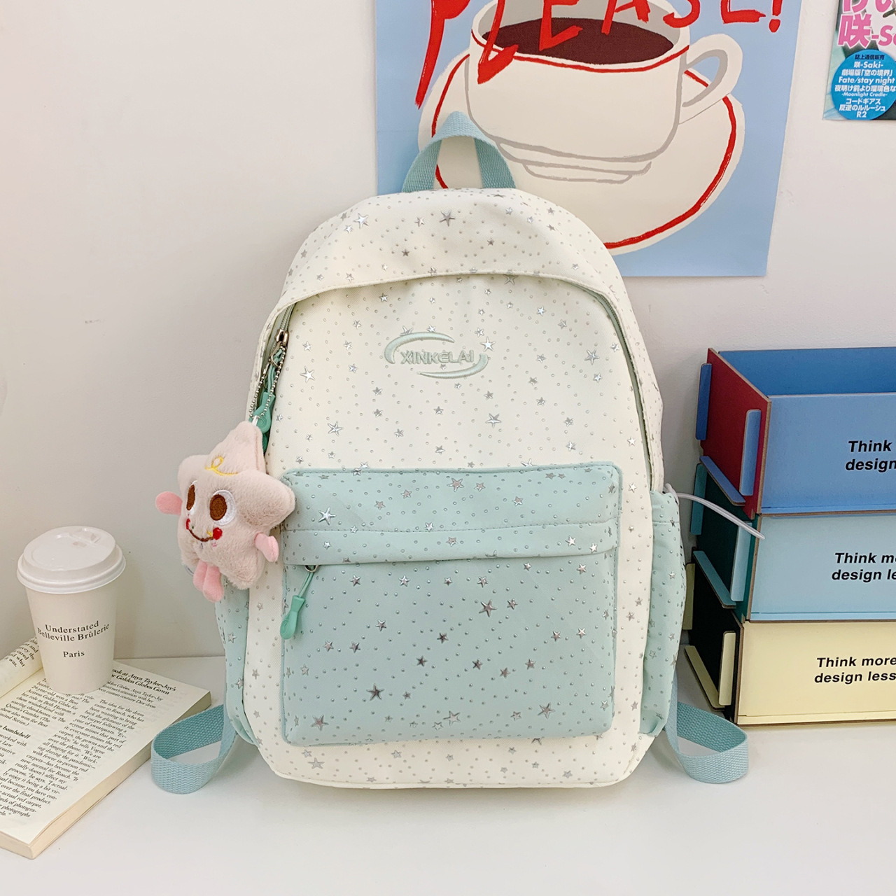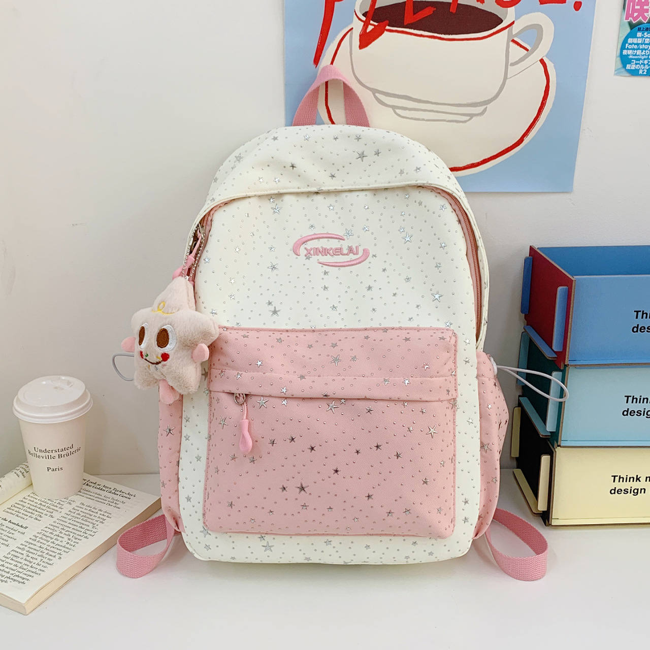 可爱撞色双肩包女星星小清新初中女生背包校园高中大学生书包外贸