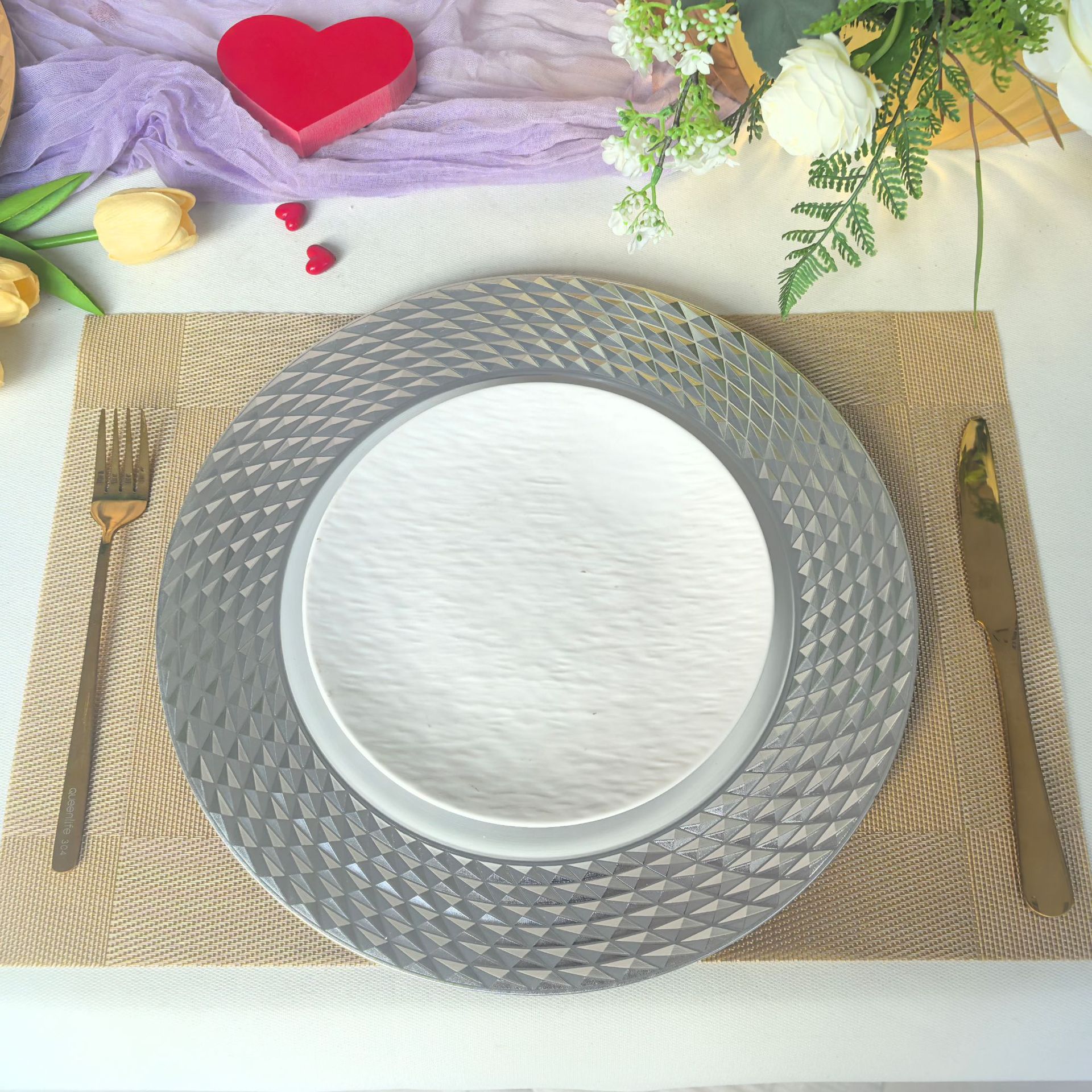 charger plates简约电镀圆盘酒店婚礼生日宴会垫盘塑盘工艺盘工厂