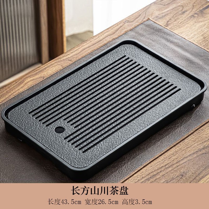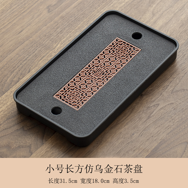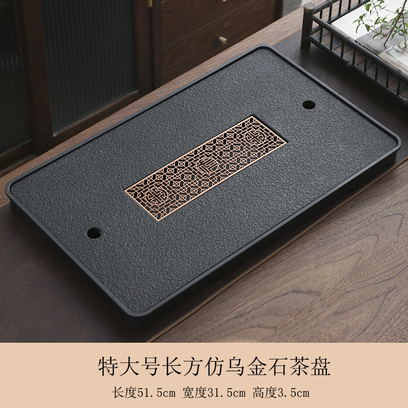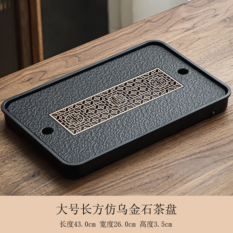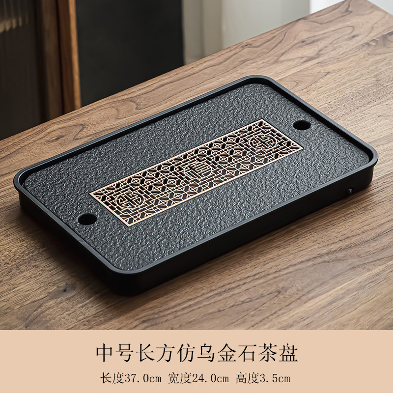 B类仿乌金石茶盘茶具轻奢家用石材茶台小型带储排沥水盘干泡台托