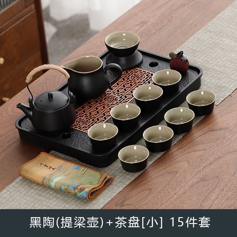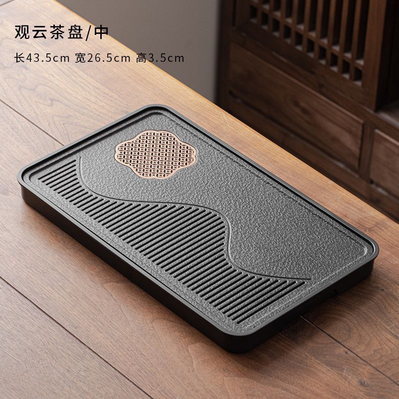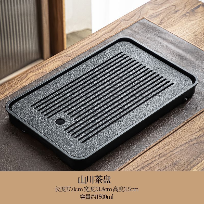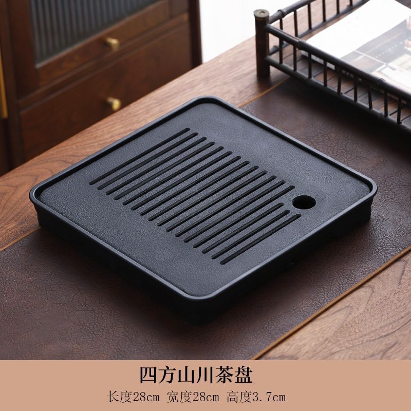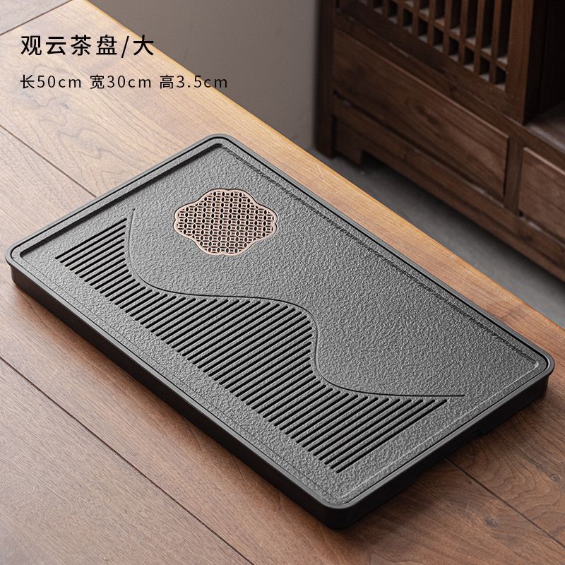 B类仿乌金石茶盘茶具轻奢家用石材茶台小型带储排沥水盘干泡台托