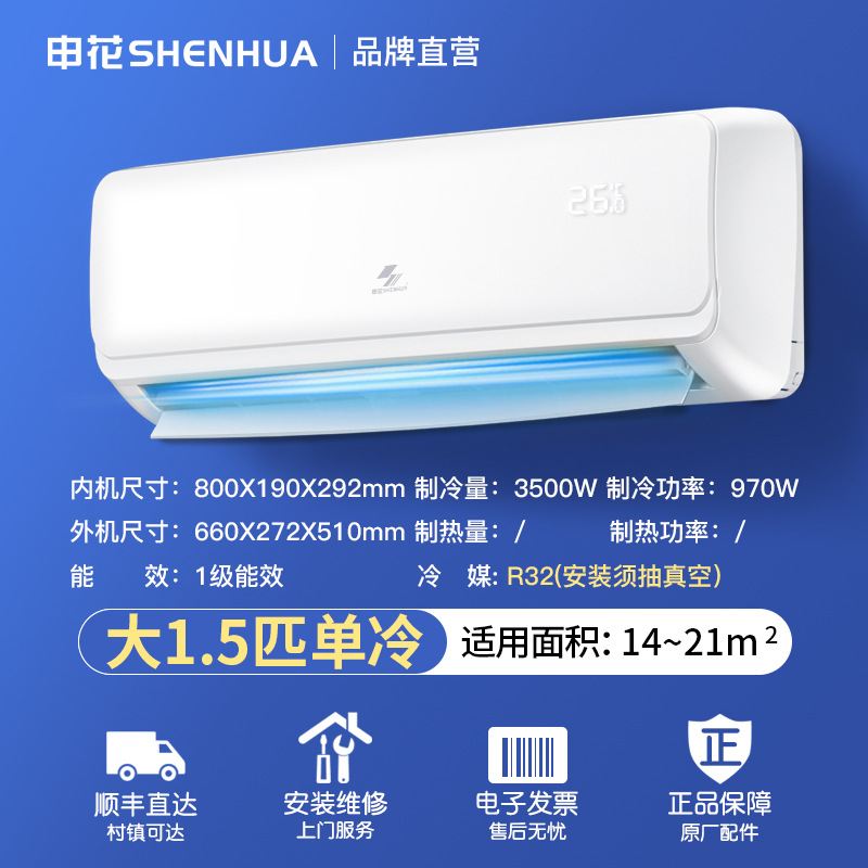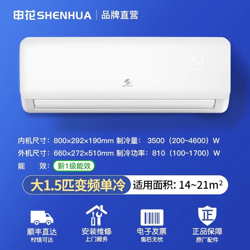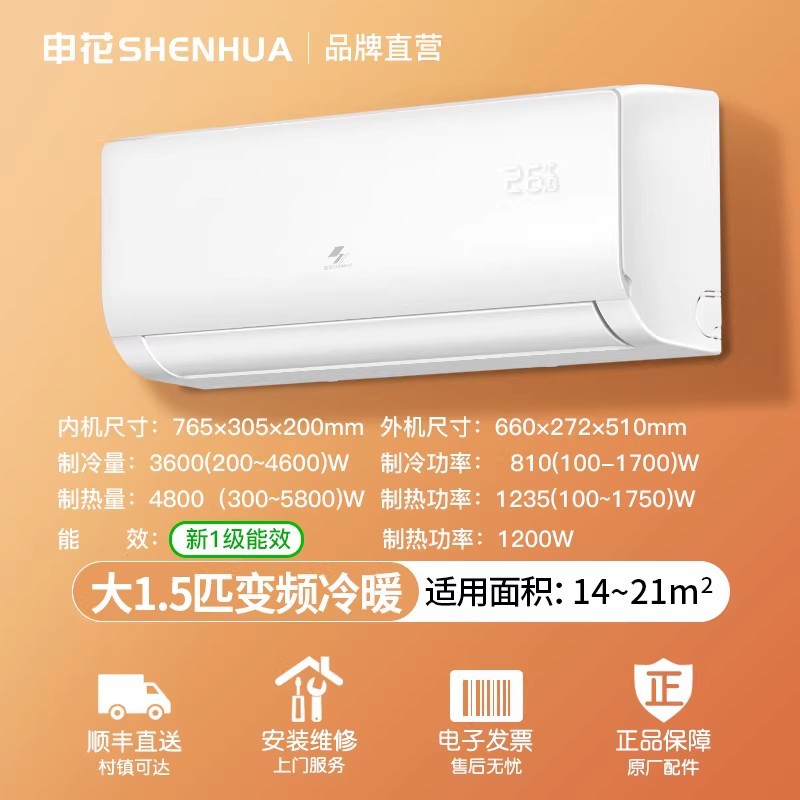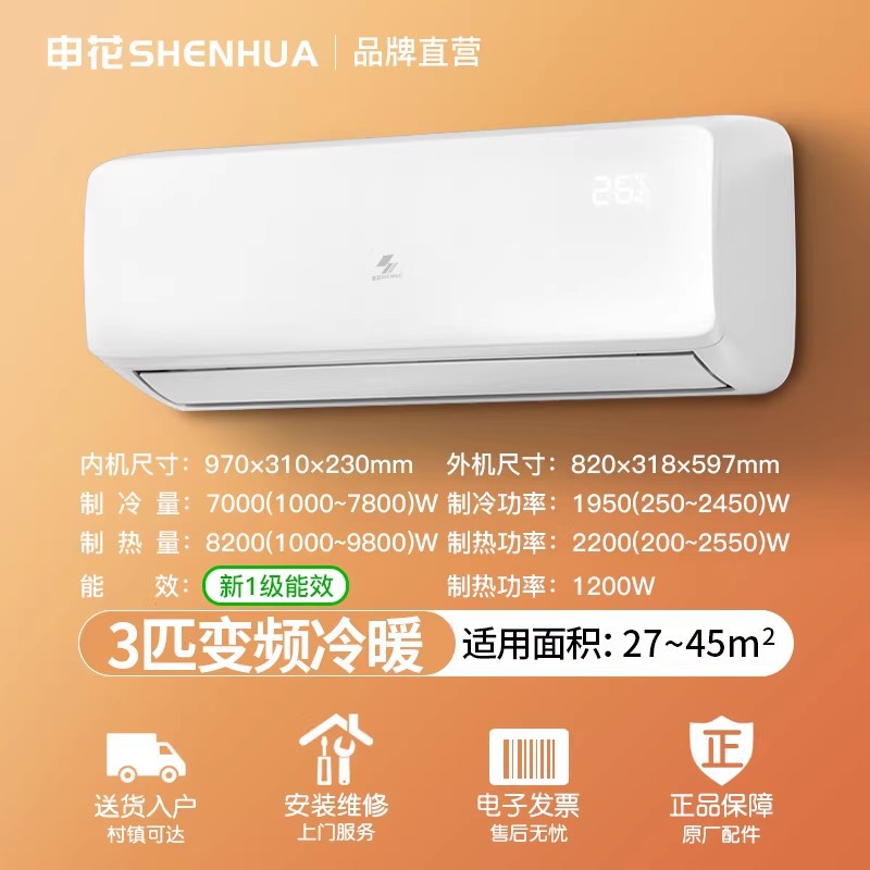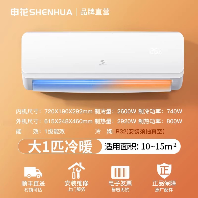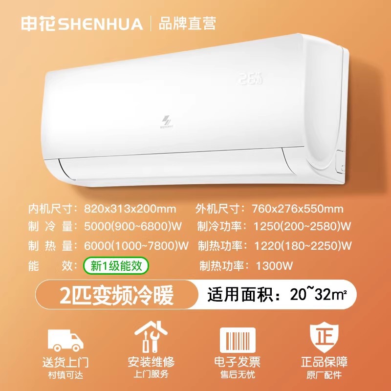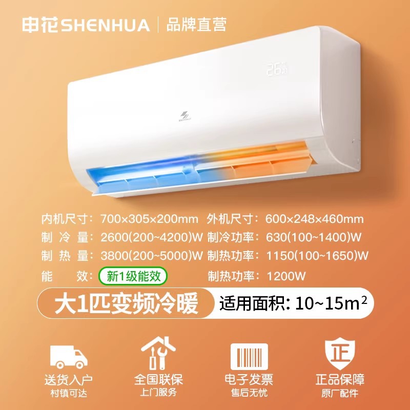 申花冷暖空调挂机新一级能效1匹大1.5匹变频冷暖2匹壁挂式节能