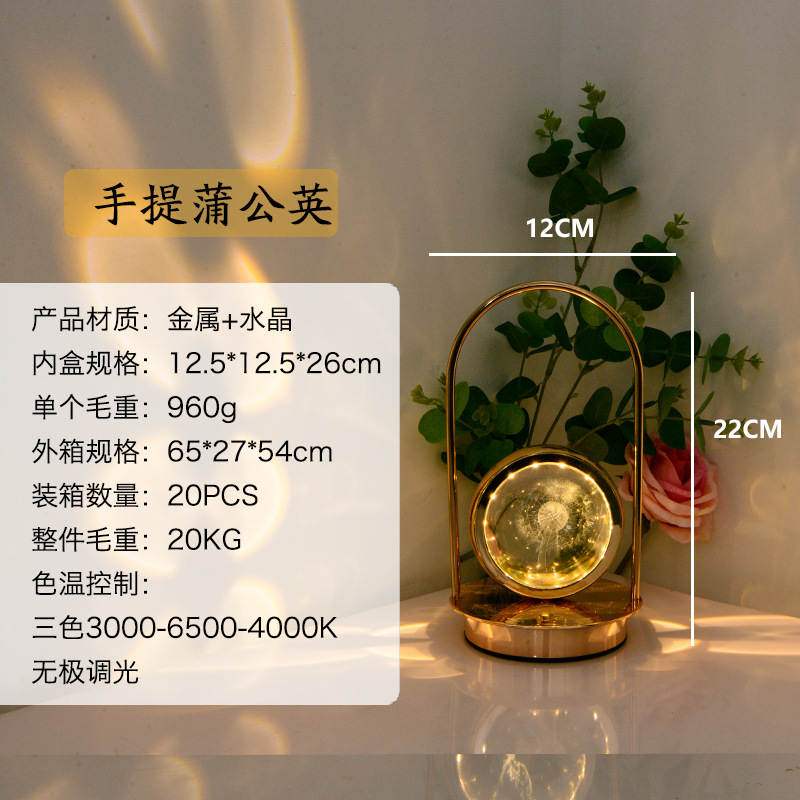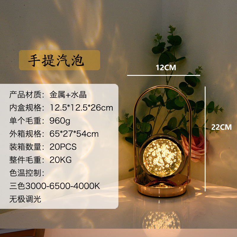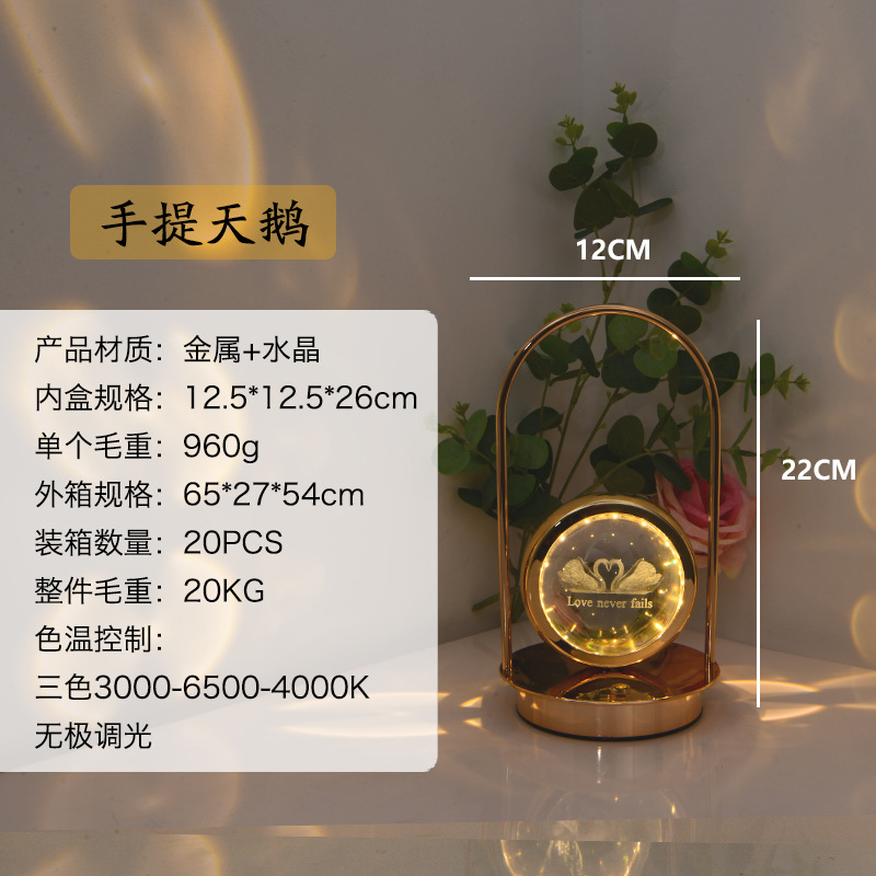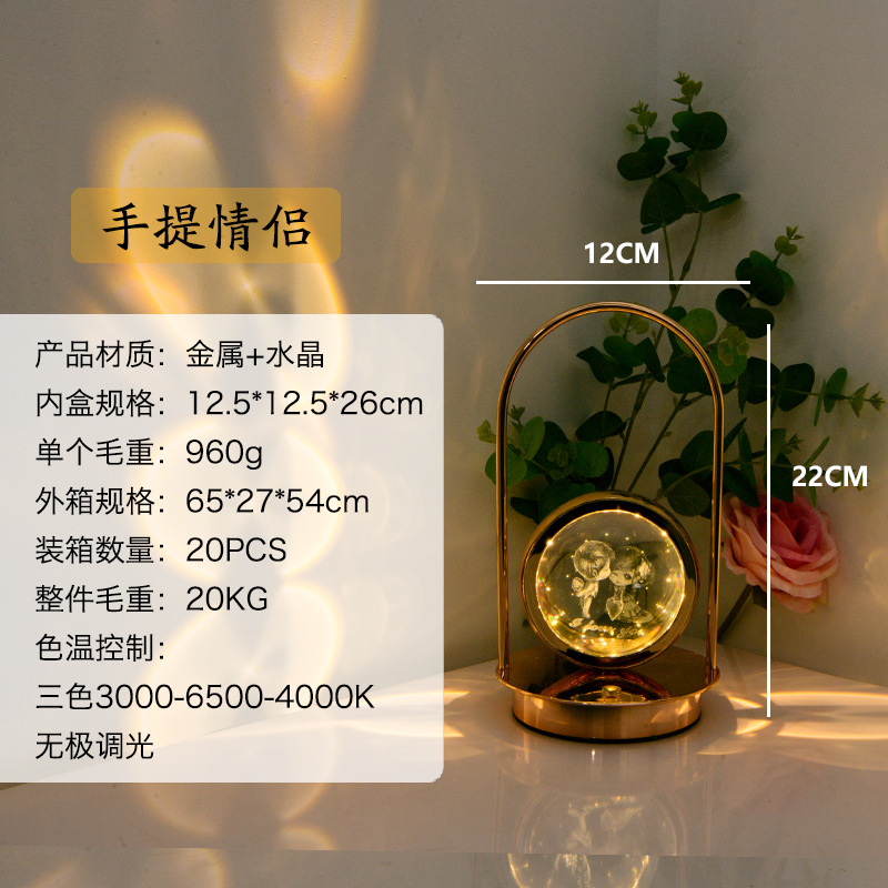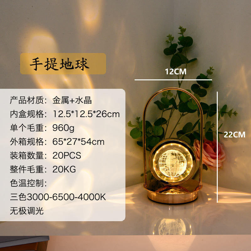 LED创意3D手提内雕台灯水晶球水母小夜灯摆件浪漫装饰氛围灯氛围