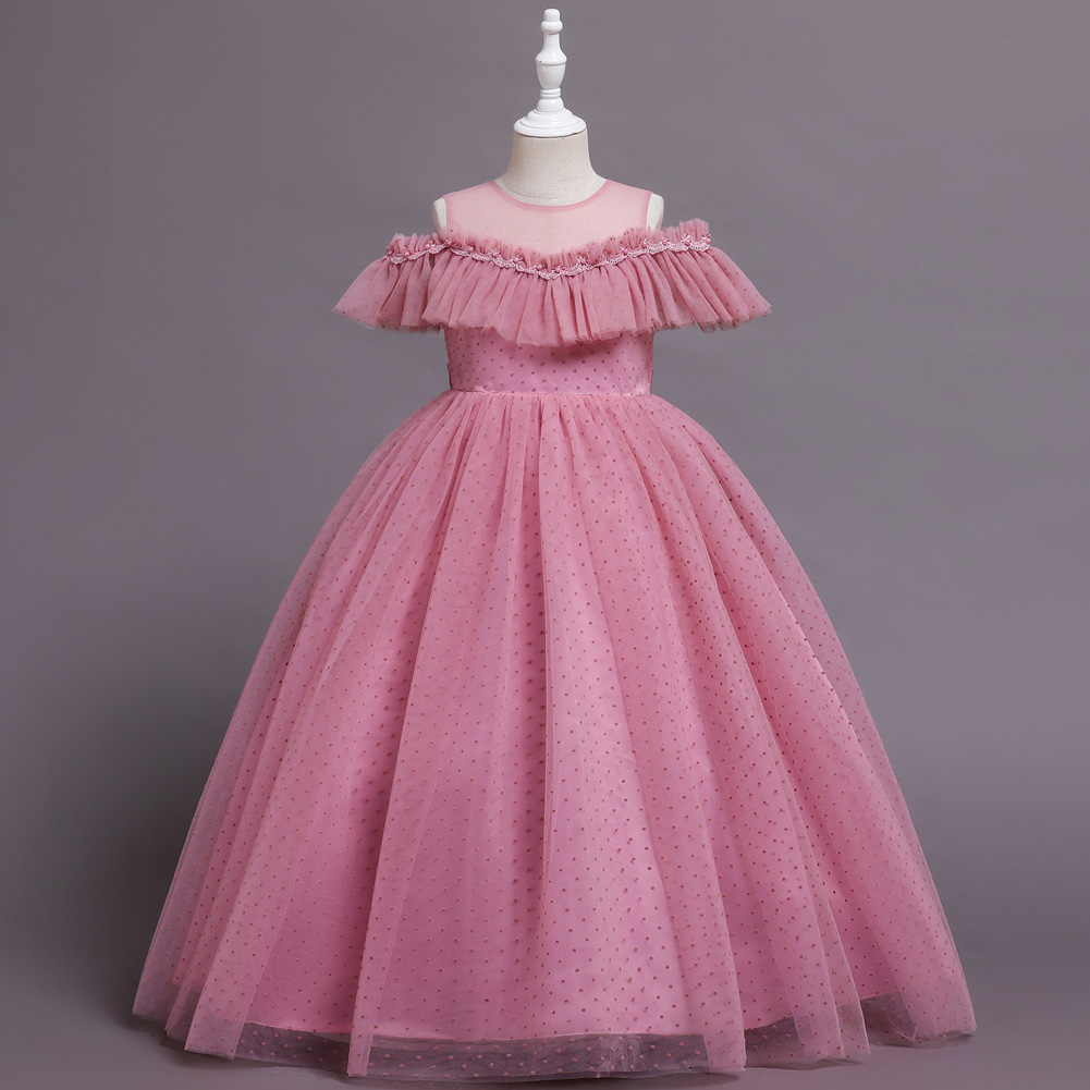 速卖通女童连衣裙中大童网纱波点长裙小主持人儿童公主礼服吊带裙