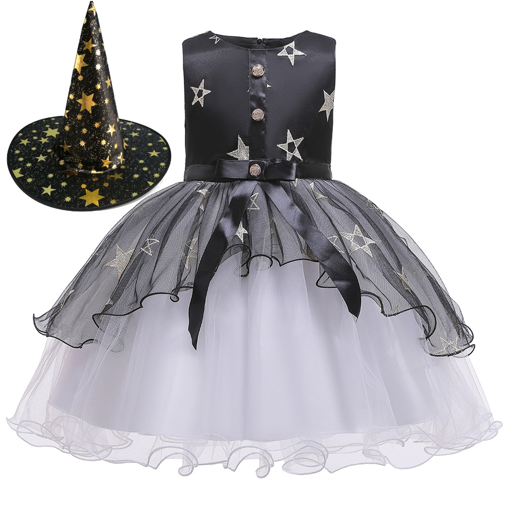 跨境女童万圣节派对礼服紫色橙色蛋糕蓬蓬裙儿童礼服吸血鬼连衣裙
